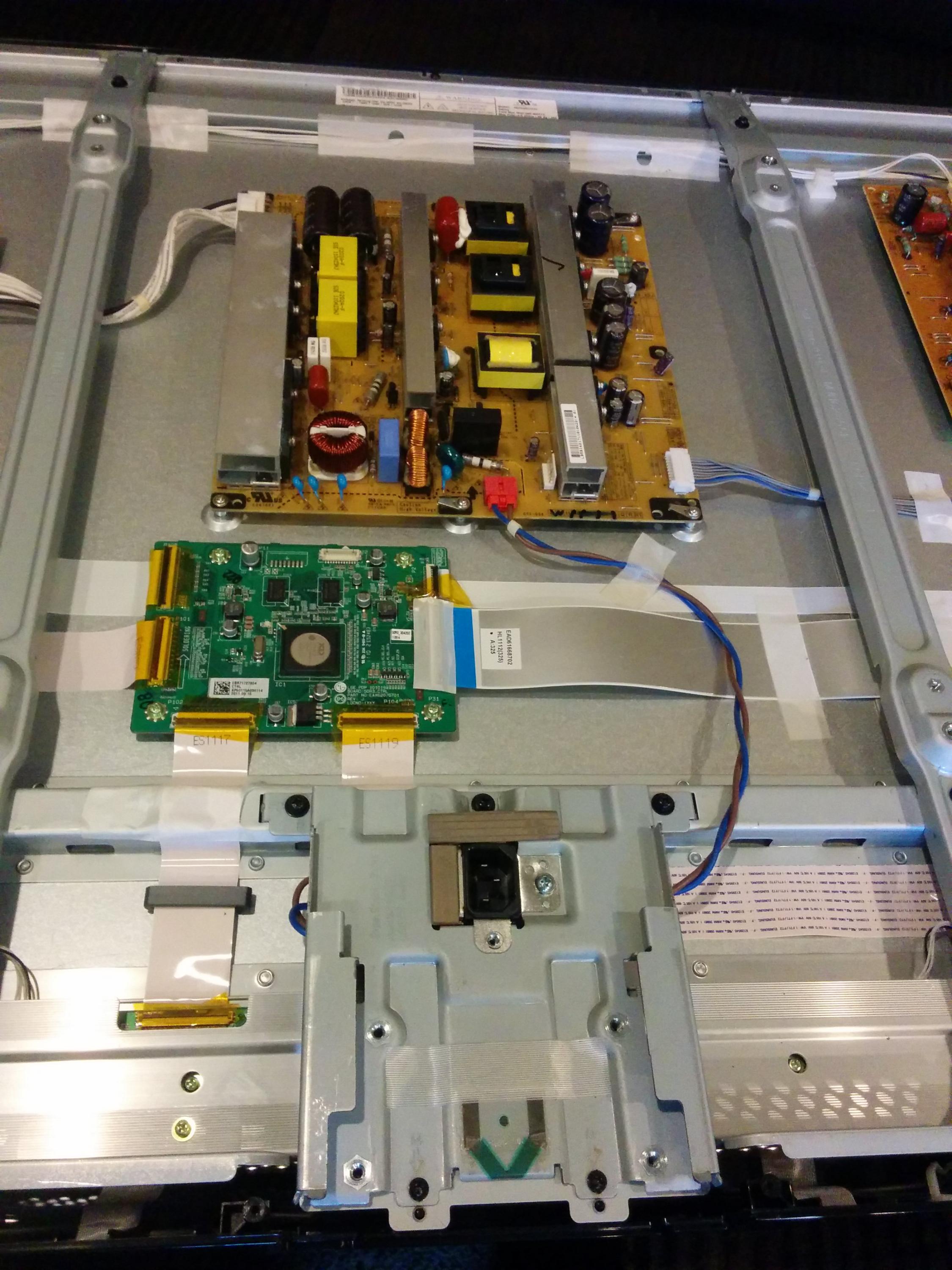 I have an LG 50PV450 that recently died on me (about 5 months ago). It's been sitting on my couch in the basement since then and I've finally gotten the ambition to look at it. When it turns on, I can hear the sound like normal, but I have no video. I've turned it on in a dark room, and there's nothing at all. I've skimmed some posts and have tried the following: