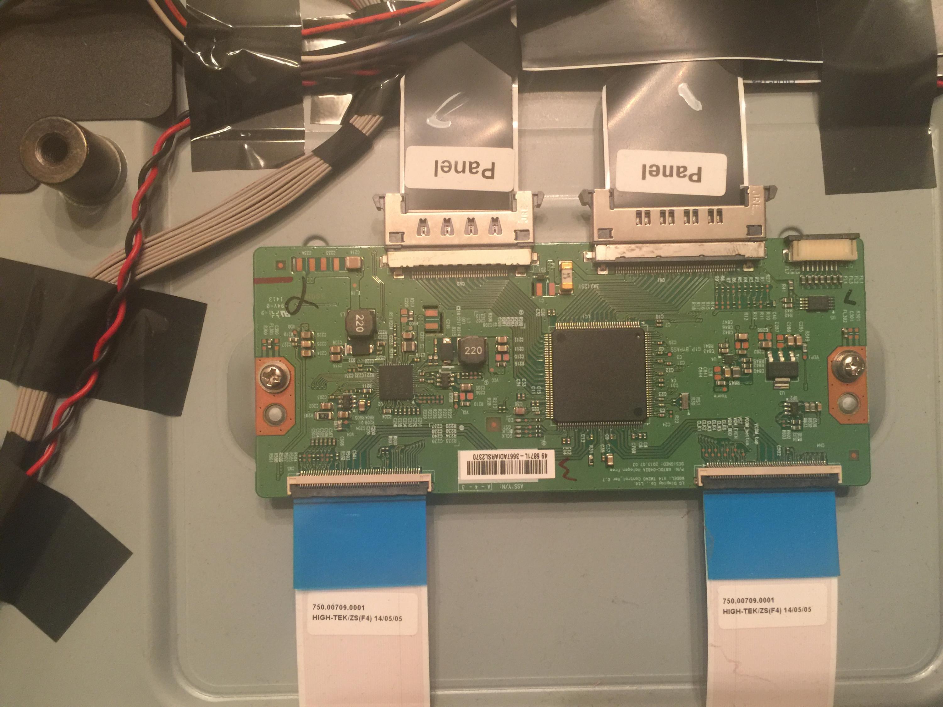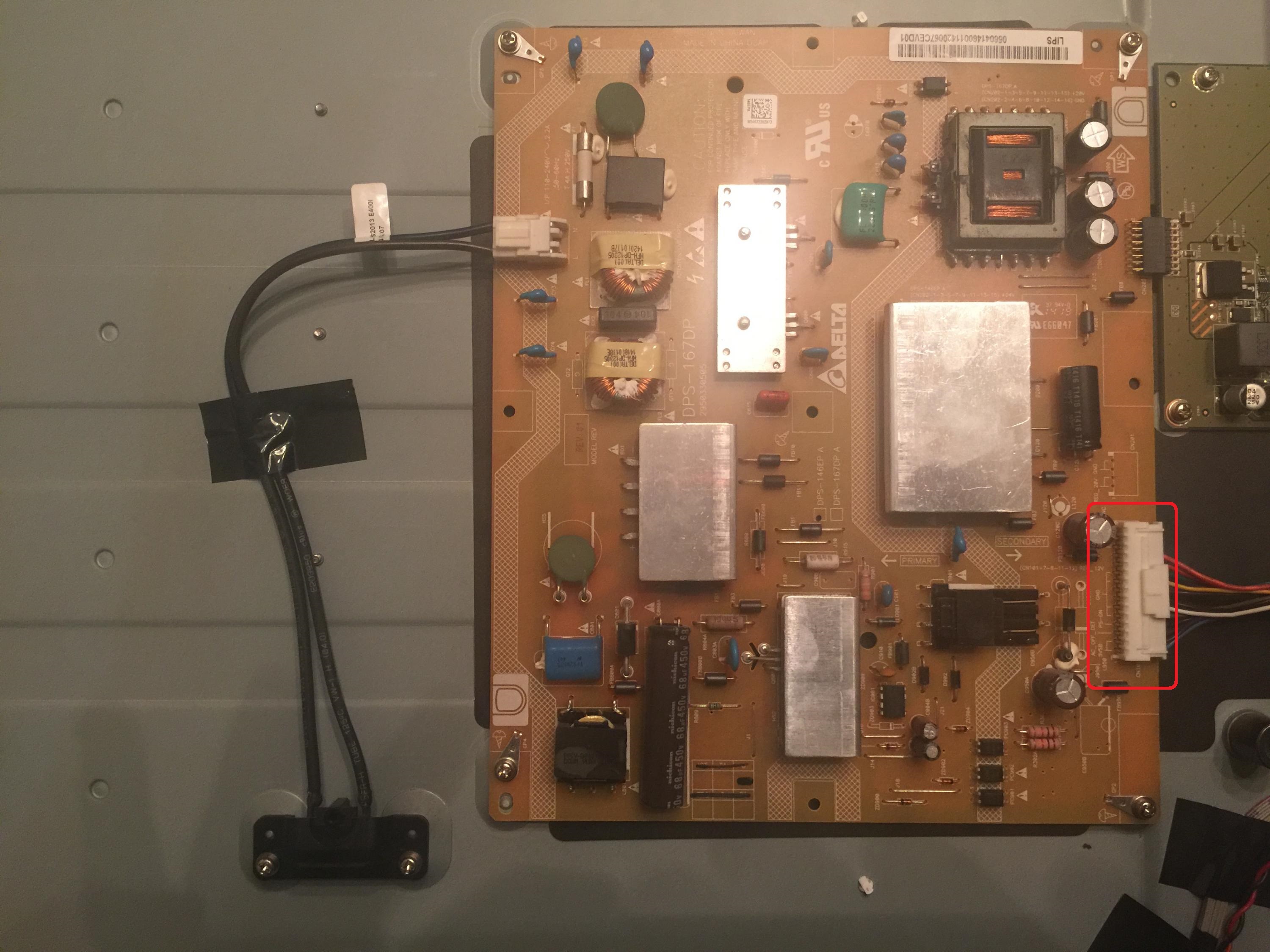 My girlfriends grandpa asked me to take a look at his TV because it wouldn't turn on anymore. The TV is a Vizio Razor 49" model M492i-B2. I took the back off to access the circuit boards inside so I could inspect them for any obvious signs of damage but I couldn't see anything that really stuck out to me. I took a picture of each board so maybe someone might see something I didn't. The TV doesn't turn on and there is no stand by light or anything. Any help is greatly appreciated!