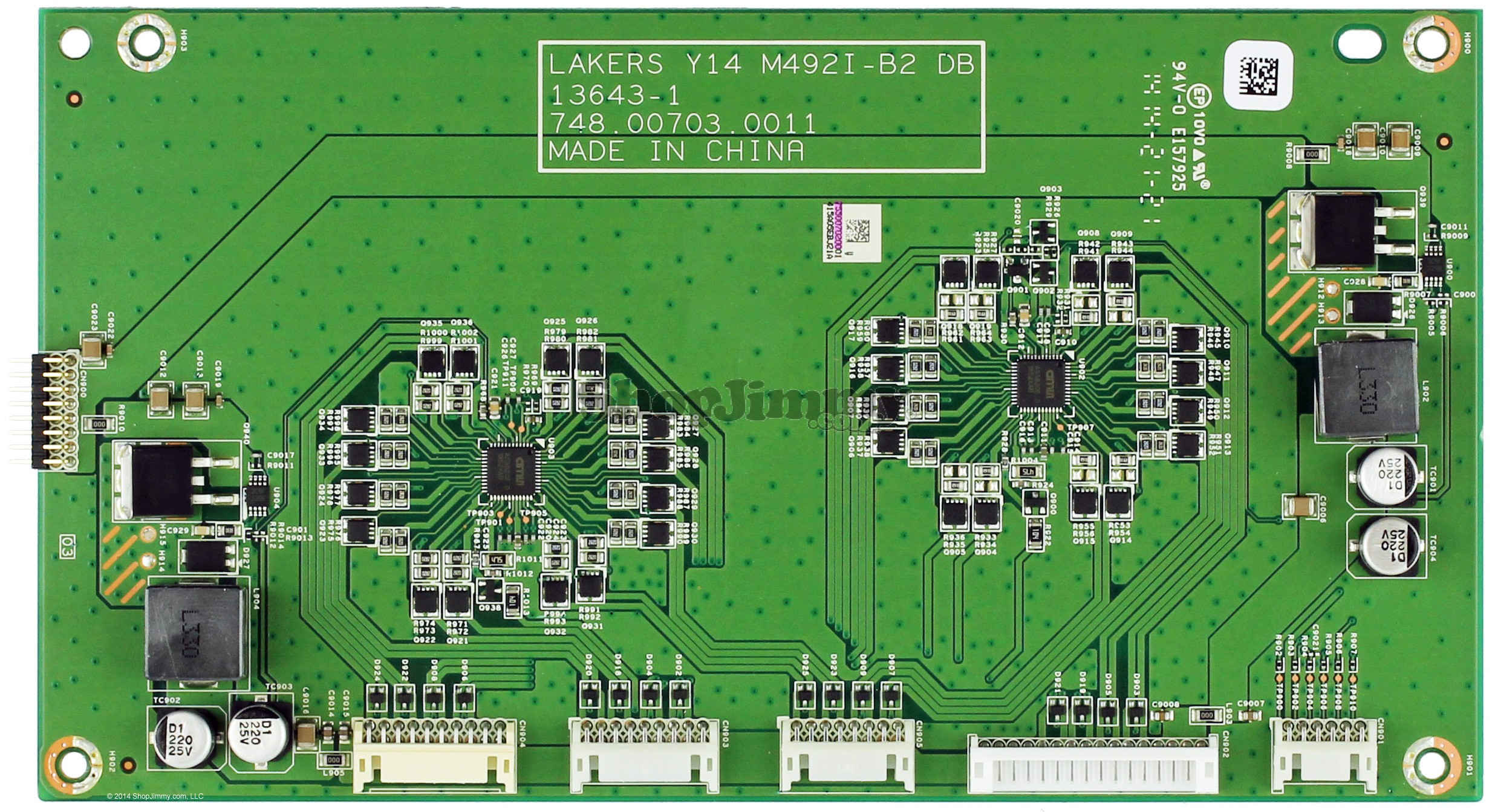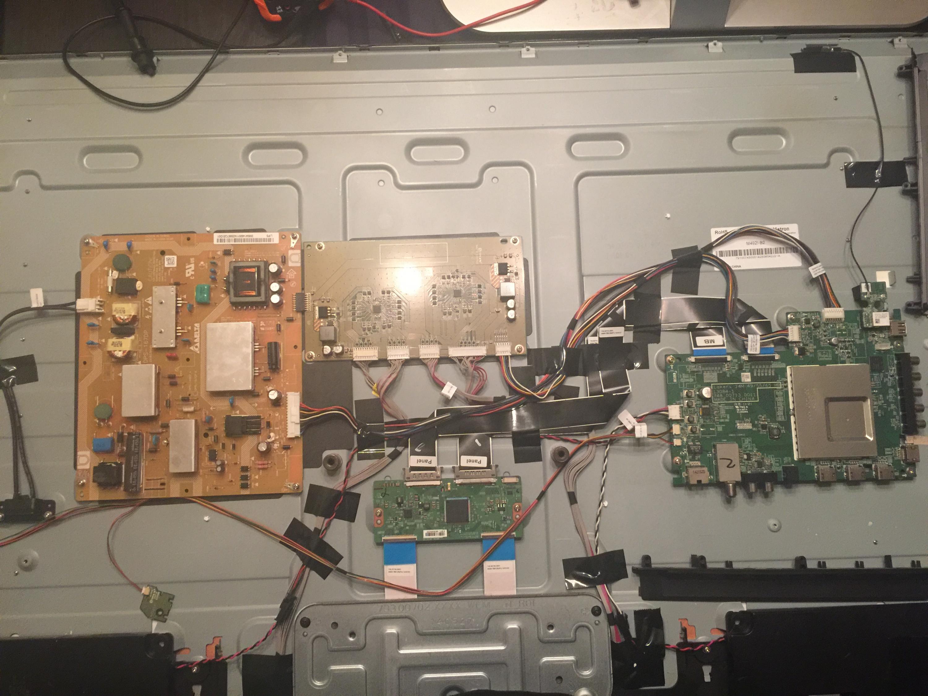 My girlfriends grandpa asked me to take a look at his TV because it wouldn't turn on anymore. The TV is a Vizio Razor 49" model M492i-B2. I took the back off to access the circuit boards inside so I could inspect them for any obvious signs of damage but I couldn't see anything that really stuck out to me. I took a picture of each board so maybe someone might see something I didn't. The TV doesn't turn on and there is no stand by light or anything. Any help is greatly appreciated!