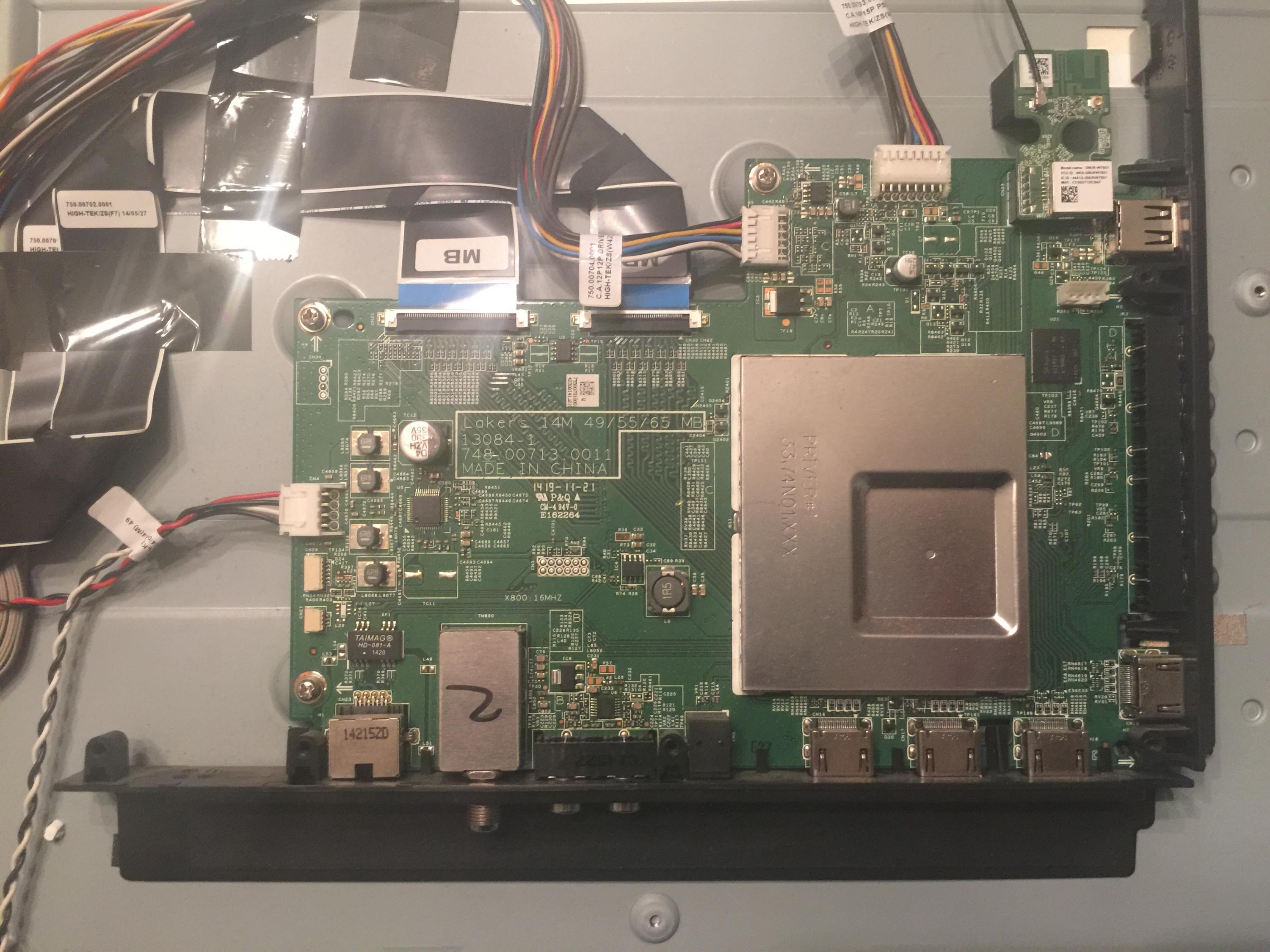My girlfriends grandpa asked me to take a look at his TV because it wouldn't turn on anymore. The TV is a Vizio Razor 49" model M492i-B2. I took the back off to access the circuit boards inside so I could inspect them for any obvious signs of damage but I couldn't see anything that really stuck out to me. I took a picture of each board so maybe someone might see something I didn't. The TV doesn't turn on and there is no stand by light or anything. Any help is greatly appreciated!