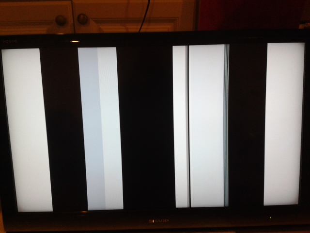 I have the above Sharp TV that had a blown out T-CON board (blown fuse, shorted bypass cap and cooked chip). I put in 2 replacement boards, purchased off eBay, and I get the result shown in the picture. Pressing "Menu" or any other buttons does not change the display.