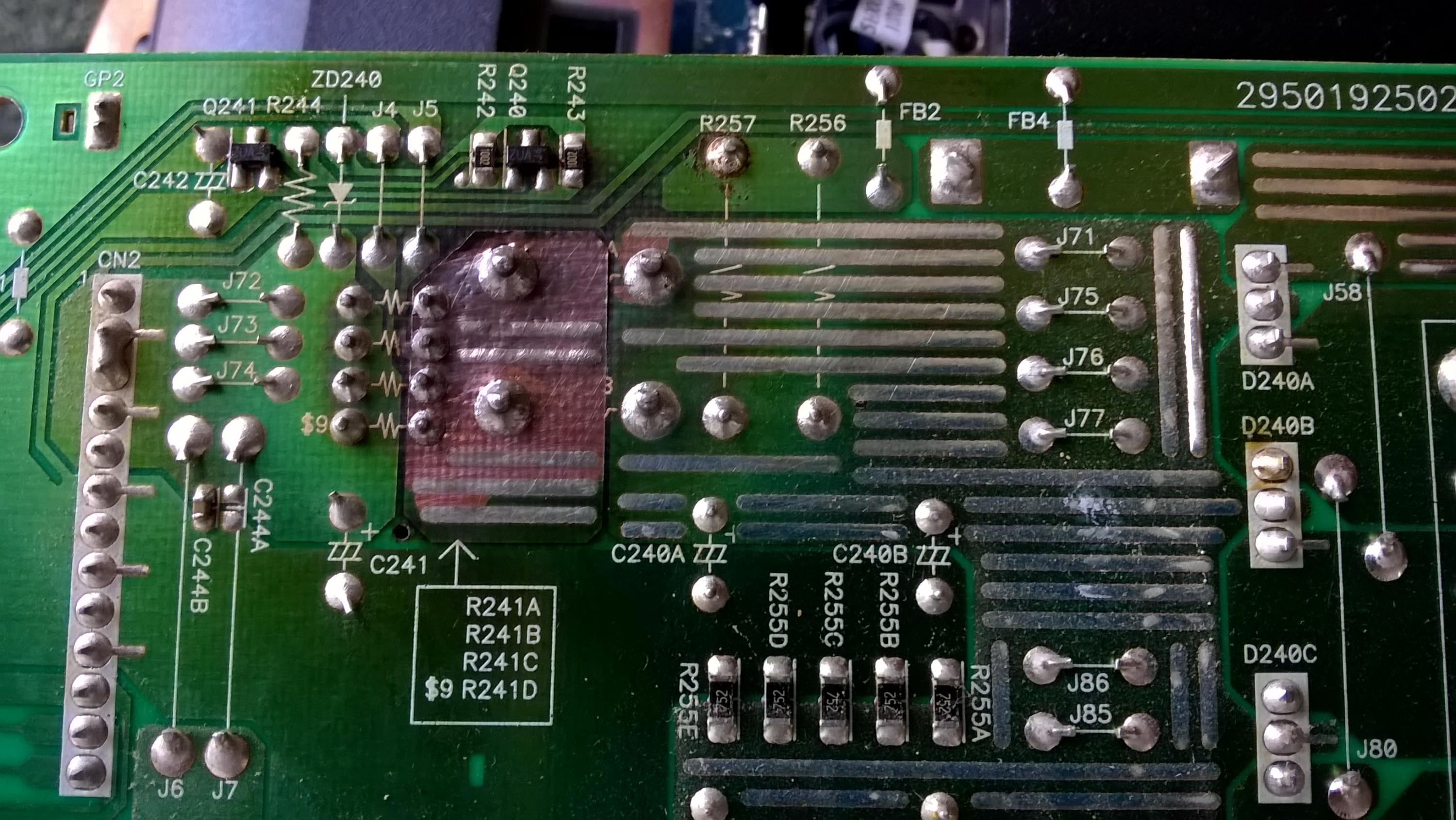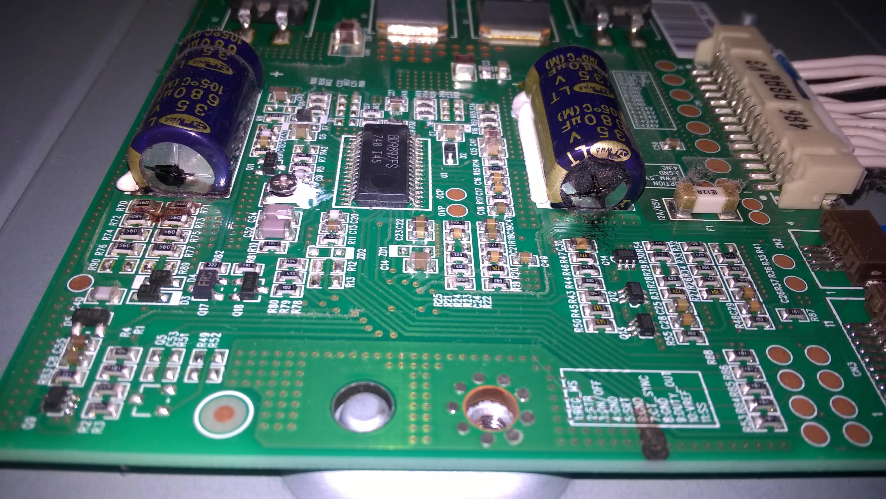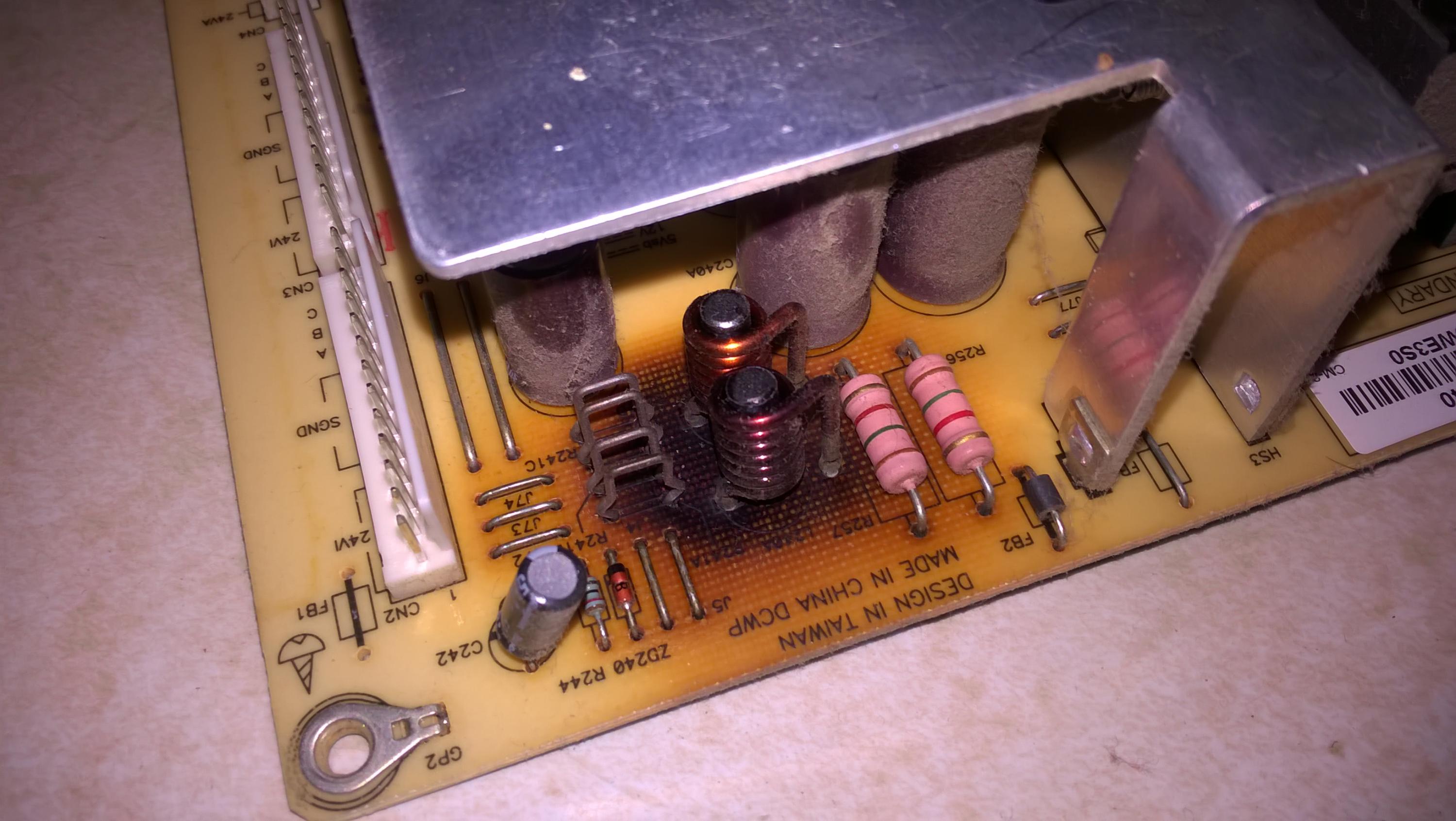 I got this TV free off CL. I was told the power supply was a problem but it ran for 6 hours without a problem. The Power board has the same bad cap as others have described and a fairly good burn on the board. Also I read about the caps on the inverters and, surprise, they are bad too so I'm going to replace them. Does anyone have a really good close up of the back of the Power board under the induction coils? I don't have a problem hand wiring a repair but I'd like to know what it started like.