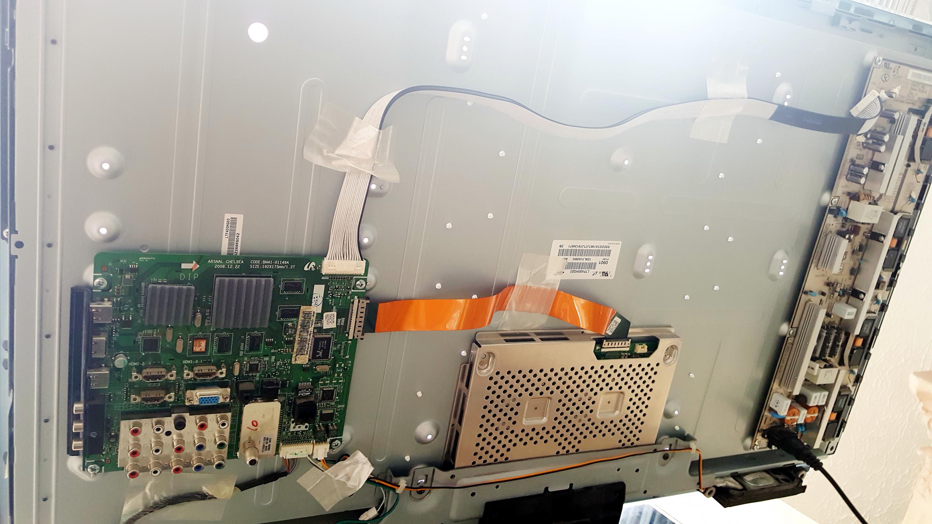 The only signal of life is the steady red light in front (PICTURE 3), this means some board still working. I touch the power up sensor next to the red light, nothing happened but if I tray turning on with the remote control the red light GOES OFF and nothing happened. NO PICTURE, NO SOUND.