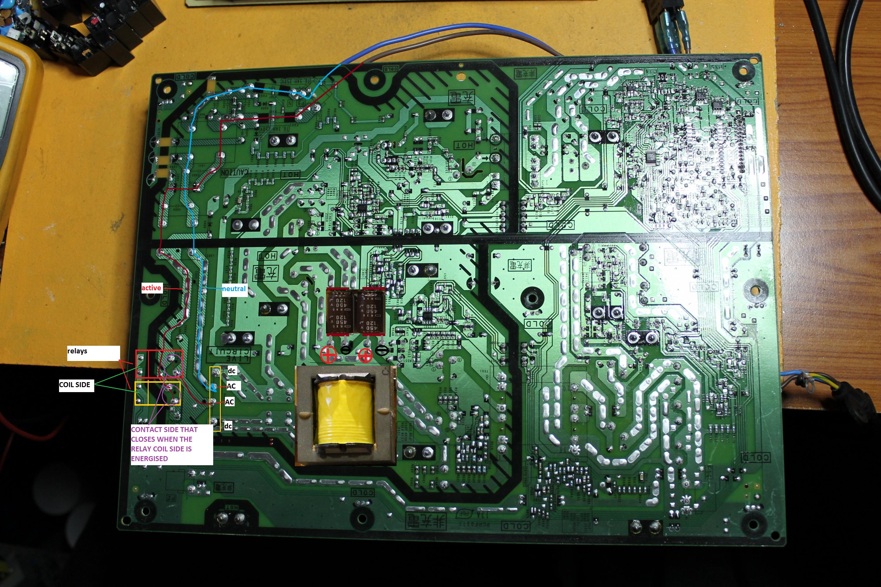 so am I. Don't have a full schematic which is a pain. I wonder if it would be worth checking the thermal resistor is good and instead of the relays applying the 240Vac maybe solder a link across the contacts on the board to bypass them and allow the 240v to go through as soon as you plug the board in?