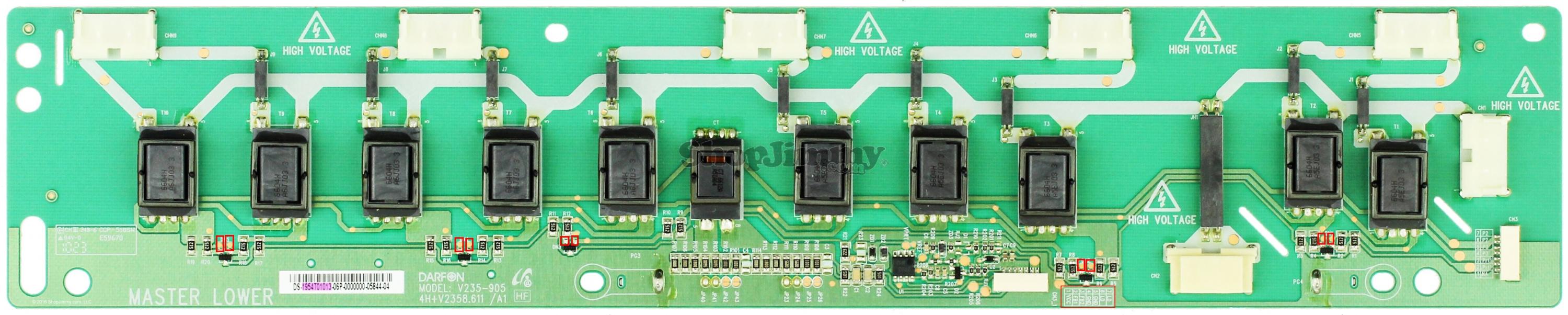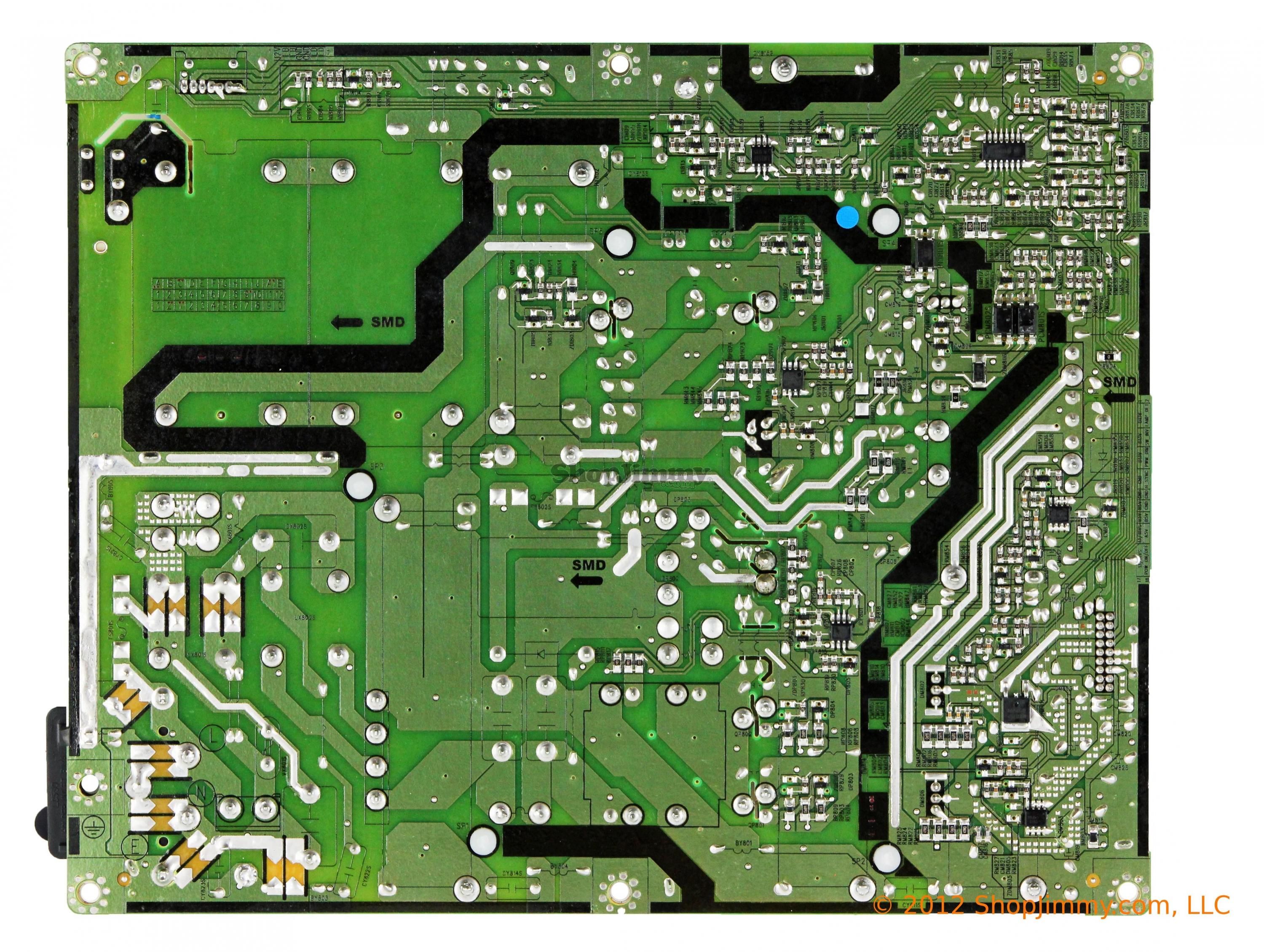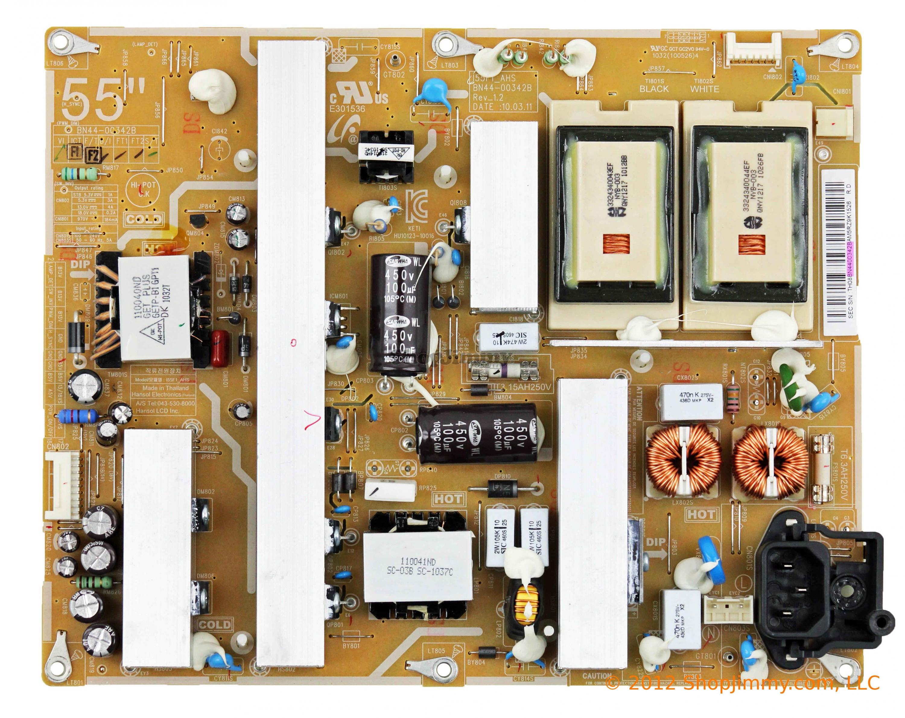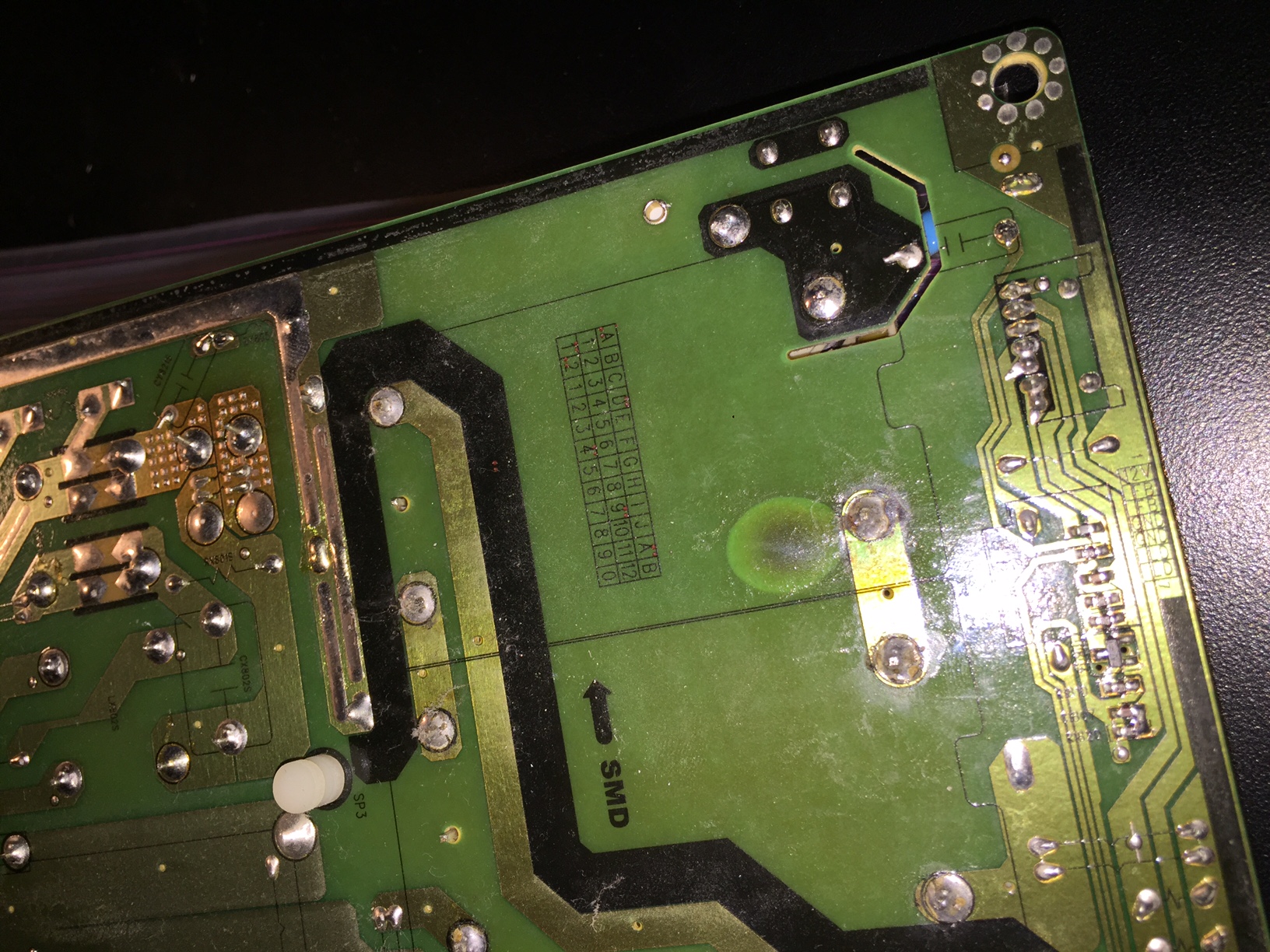 I opened the TV and saw the power supply board with a transformer burnt. Here's the pictures.