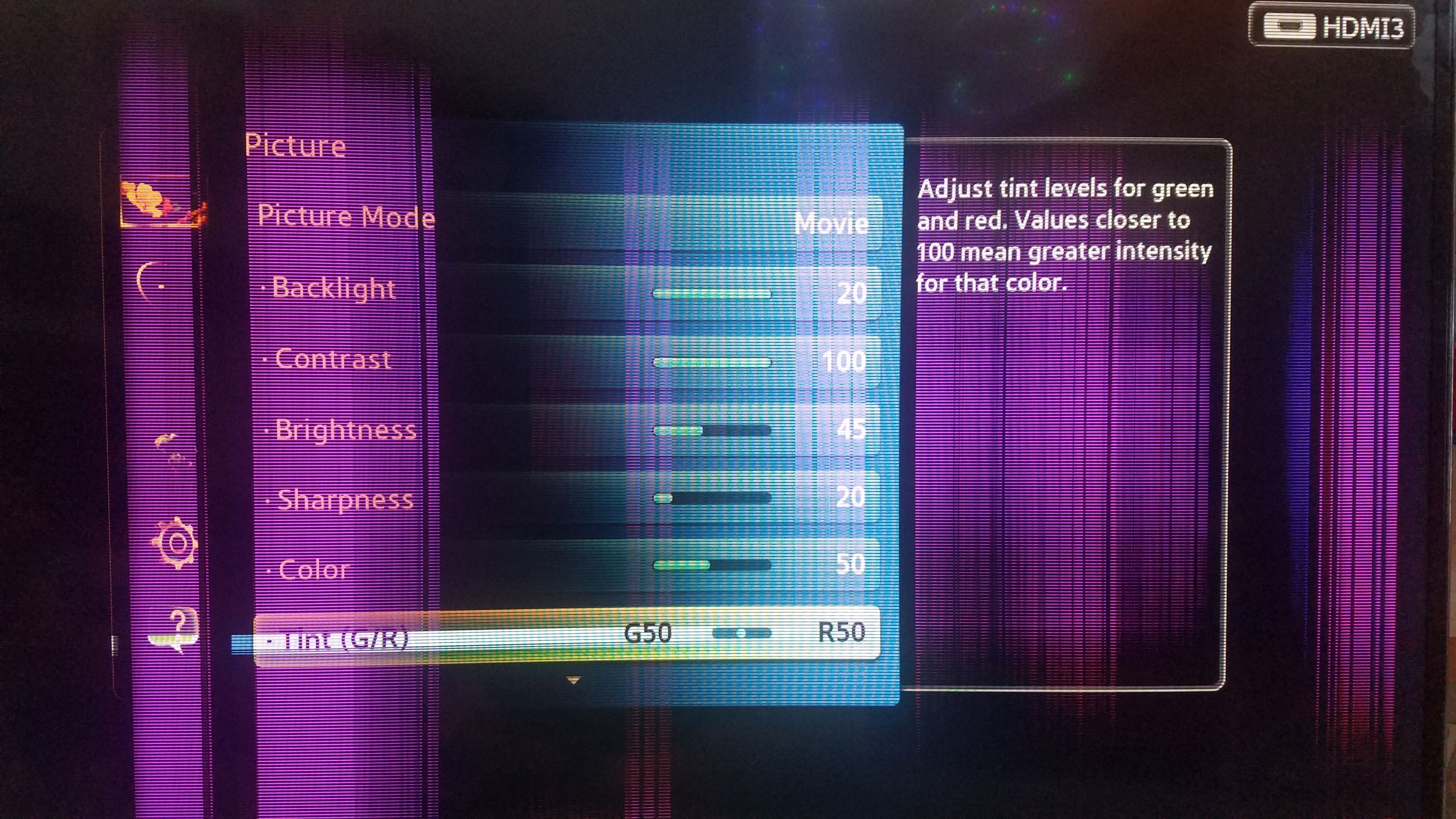 My 2012 Samsung UN55ES6580 was working pretty well until a few weeks ago.. First saw a horizontal line that just seemed darker than surrounding areas.. Then, while watching a show, everything went, well, purple and pink. The sound was still there and the picture was mostly viewable, just colors and pixels all sorts of weird.