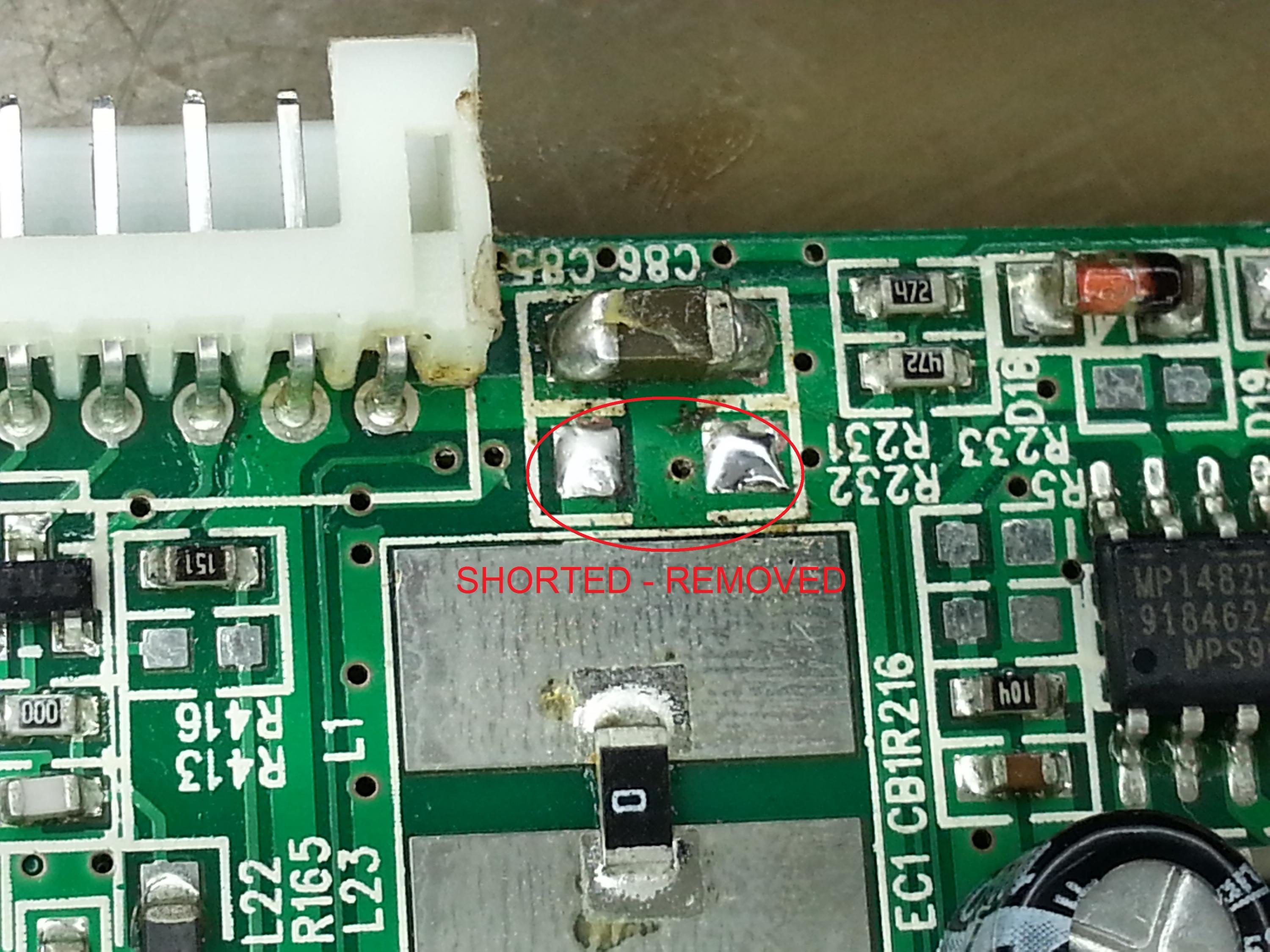 Anyway, I got a small "kitchen" TV (the brand's called Orion, but it's really a Vestel, of course) which wouldn't turn on: you'd plug it in and the blue standby light would begin flashing rapidly. It was not the sort of flash you get when the set tries to turn on, but rather when you've got a short somewhere that causes the PSU to power-cycle. I naturally started with the power supply (a Vestel 17ips15-4): checking the voltages, I noticed there was no 5VSB when the power connector to the main board was plugged in (it tried going up but fell back down to 0 at around 1.5v) - pulled out that connector and we've instantly got 5v. Applying said 5v to the "on/Off" pin turned on the power supply and inverter and I got all the proper voltages happening, following along with a schematic diagram, of course (see here). I was just about ready to pack it up and pass it off as an unrepairable main board issue (or rather an issue that I did not feel like hunting down, since it's an absolute piece of rubbish TV anyway), but then, mostly out of curiosity, I though: hey, that DVD drive...I'll try pulling out its connector just for sh!ts and giggles. I did so, plugged the set in and the blue light at the front stays on and a few seconds later we've got picture :| Ok...so is the drive busted ? I plugged it back into the main board and sure enough: same flashing standby light from earlier and going in with a multimeter on the "DC-in" and GND pins of the drive itself confirmed there was a short there ! Out of all the places where it could've been - go figure :|