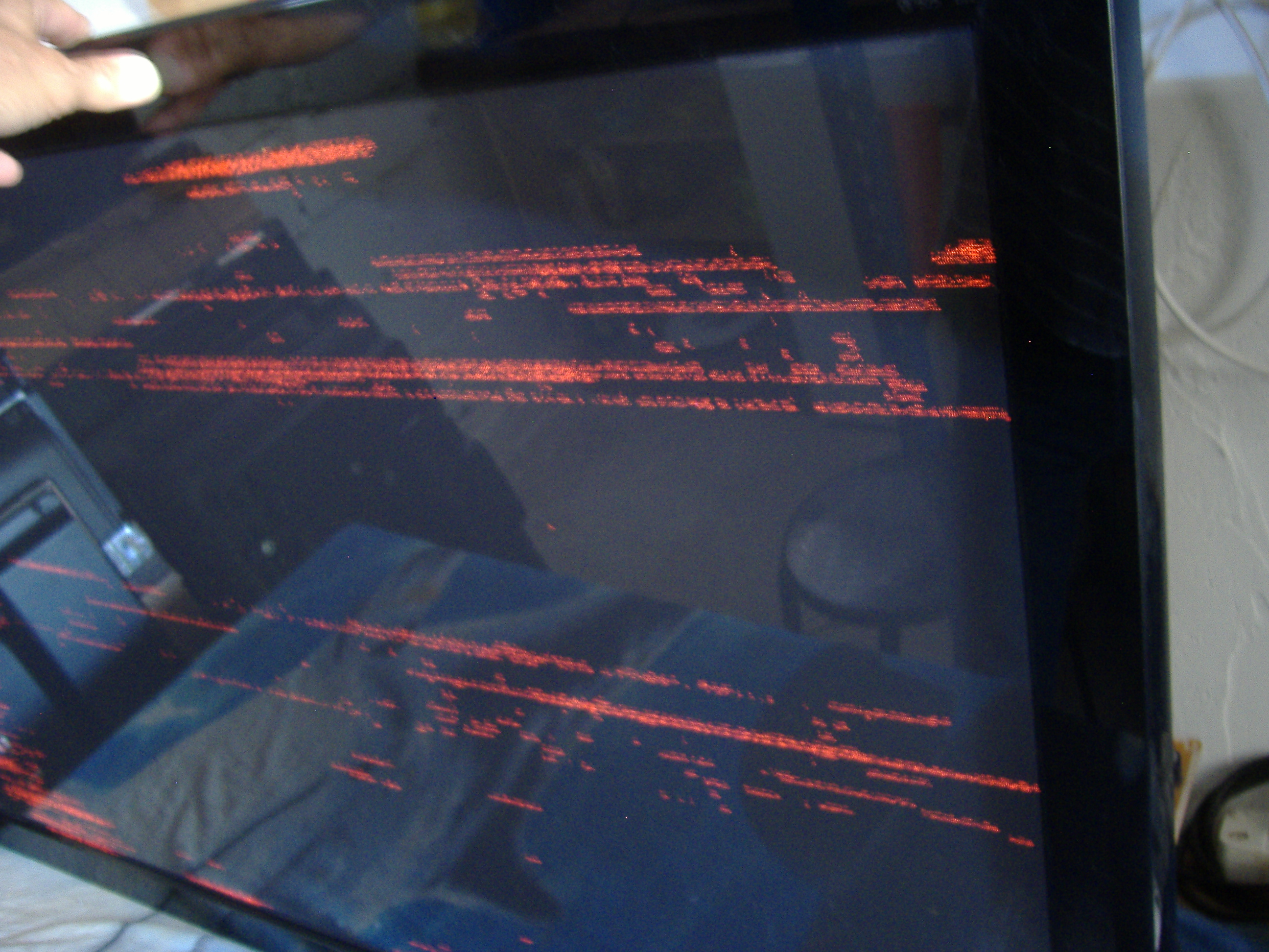 With the damage to the U5000 being so violent, i guessed the Y buffer must also be damaged. I have replaced both the Y Buffer & Y main with boards of unknown status. (salvaged pcbs). Now the set comes on, but has red lines on screen. (photo 8).