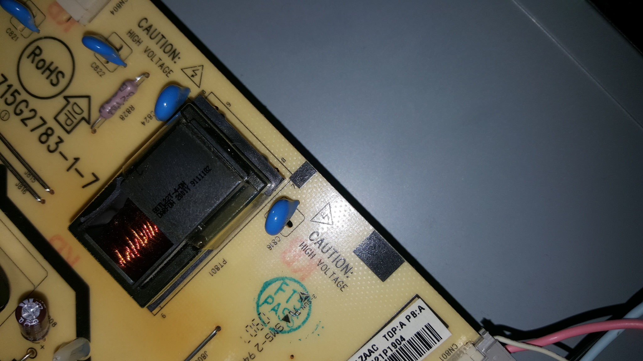 Thats the high voltage from the transformer hence i said dont measure the connectors with a multimeter. My guess its one ccfl gone or the wiring you cant run it on three as the psu will sence a error and shut down so you really need to strip it down and look whats faulty. Personaly i cant even re sell sets of this size 22in and lower no one seems to want them no more as prefer larger sets. The replacement ccfl can be expensive too and you need to match the lengh and size as they all vary.Comment