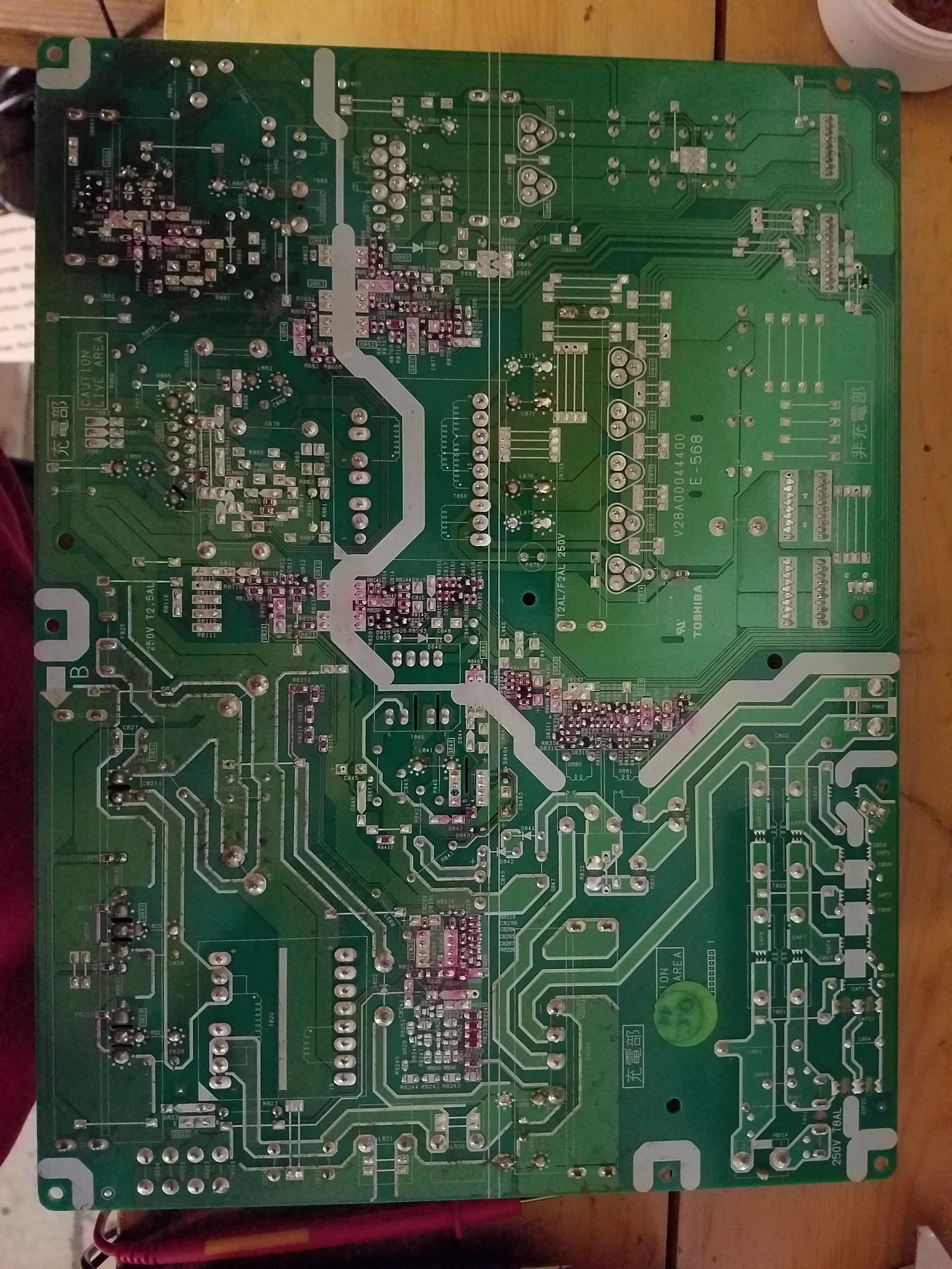 I followed the chart posted "Toshiba Regza 52HL167 LCD TV flashing amber LED repeatedly" at the p809a pin I only have 3.5 volts instead of the 5v suggested. This is indicating a main power supply.