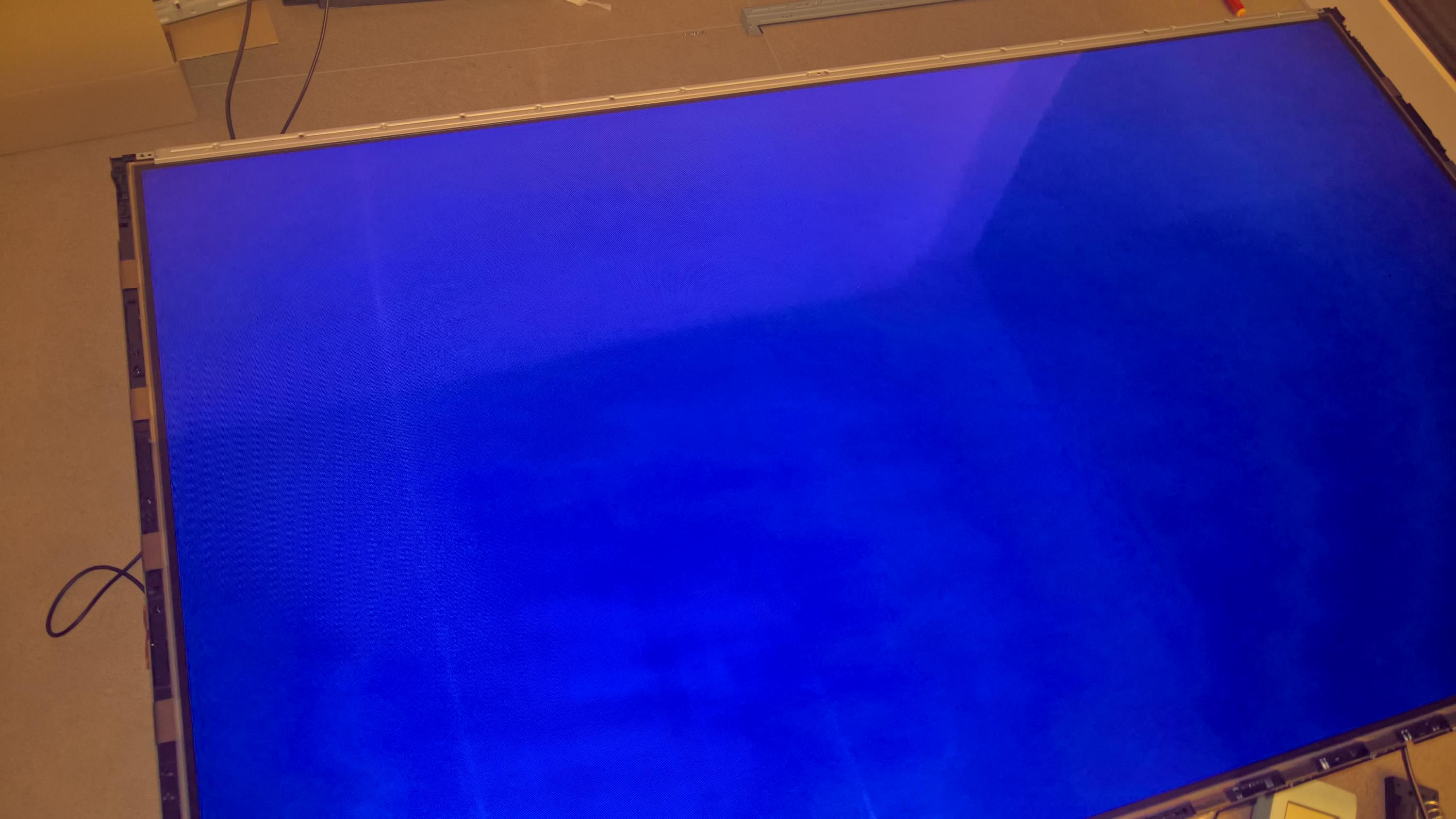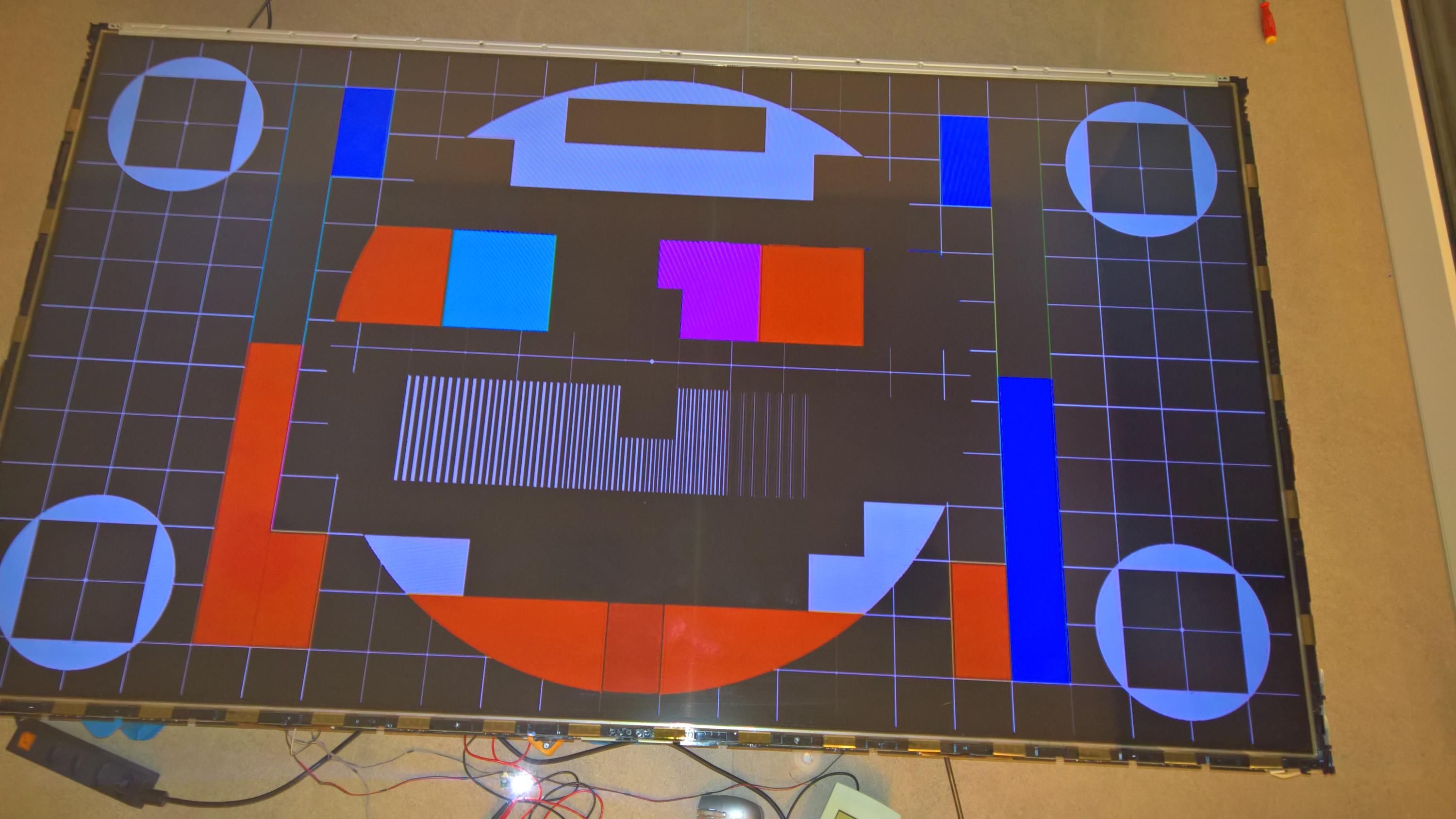 Is this with the left corner white cable removed? IF so... this makes sense. Picture with test pattern of this please.