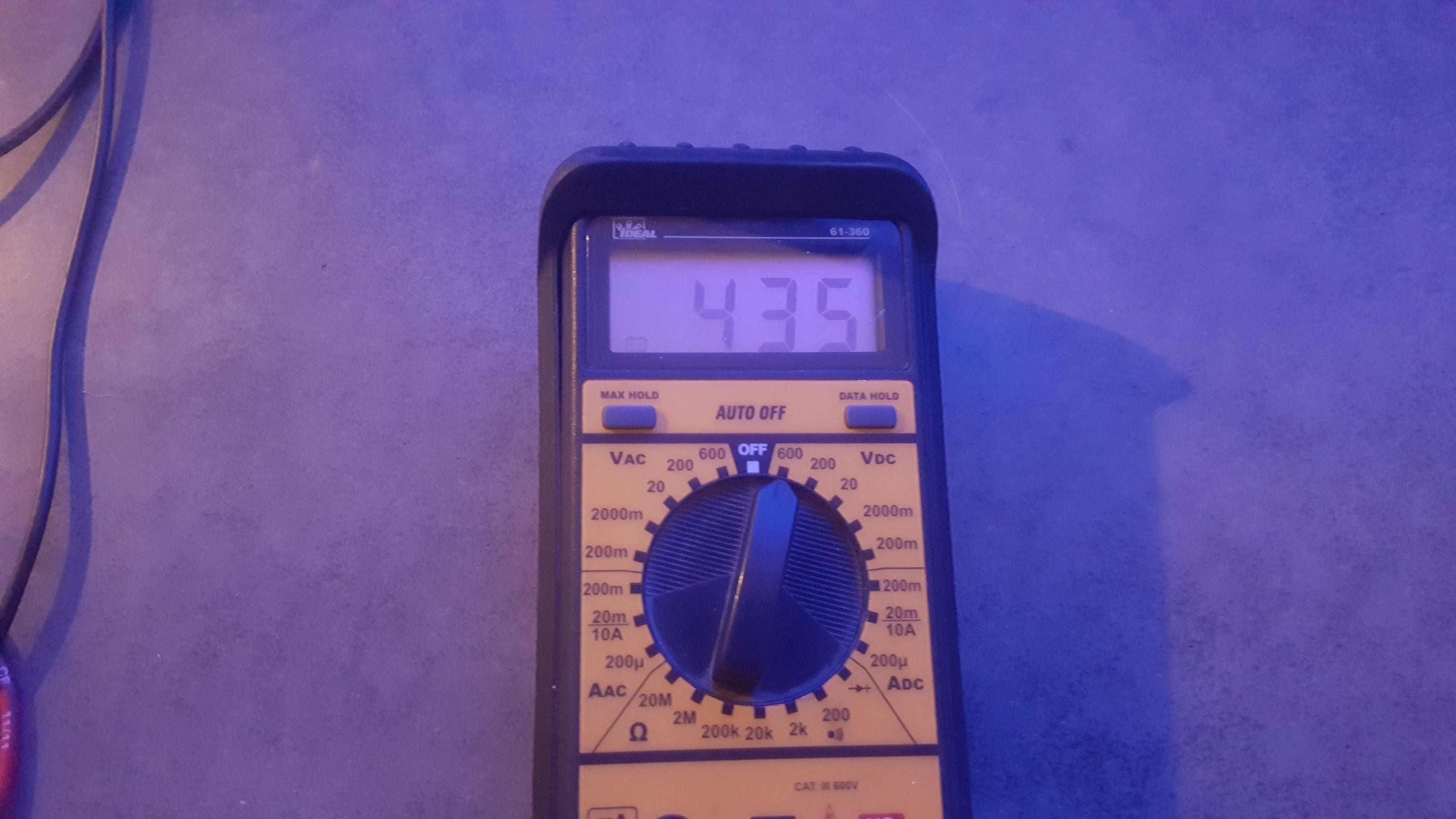 It should be 24v with the TV on and while the main filter caps measure 391volts.