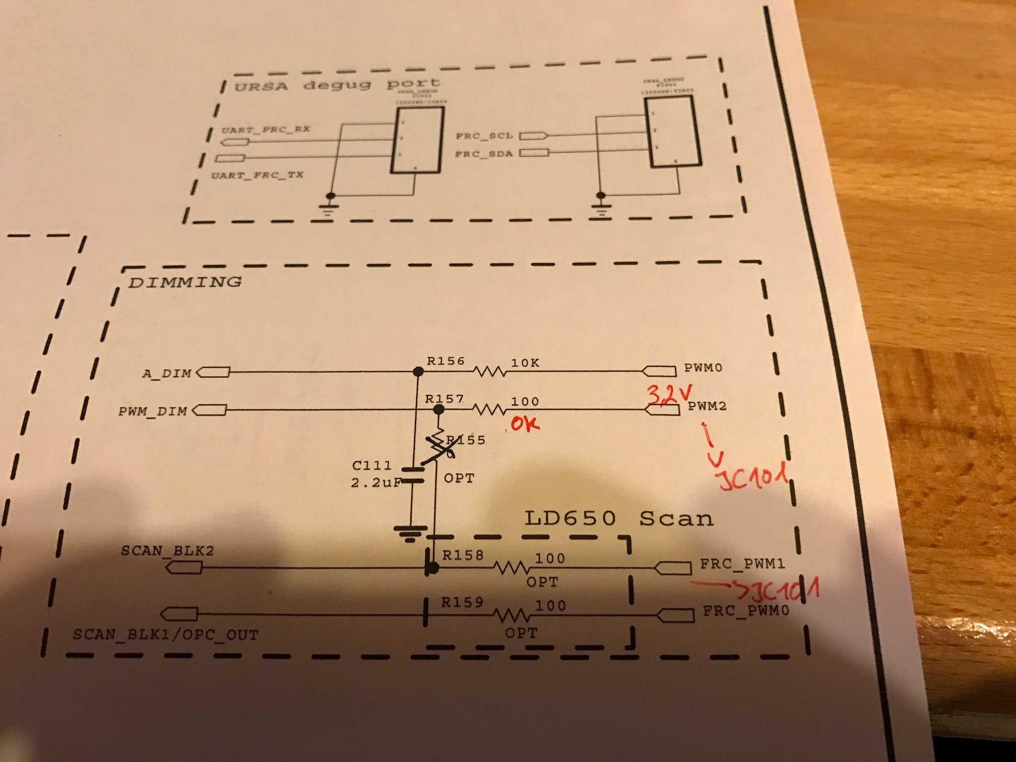 After another test: I take out R157 , first resistor after IC101 , Resistor between PWM2 and PWM_DIM. 100 Ohm = OK. Without the resistor the PWM2 line has 3,2V. I think this a big Problem on the Mainboard or may it be another board?
