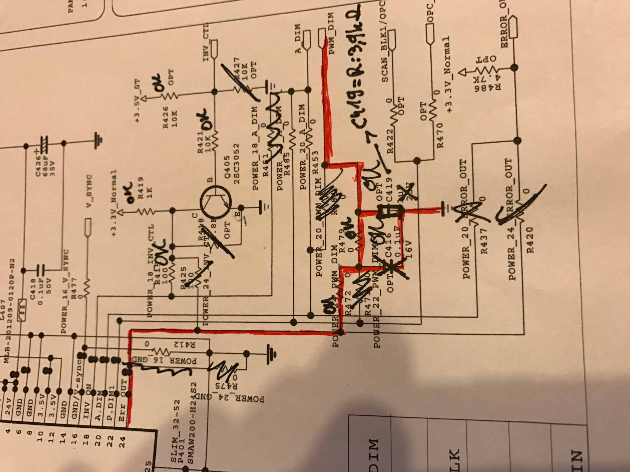 I've also searched a schematic for the led Driver board, but I can't find it: Model Number of the Driver board: 37T06-D04