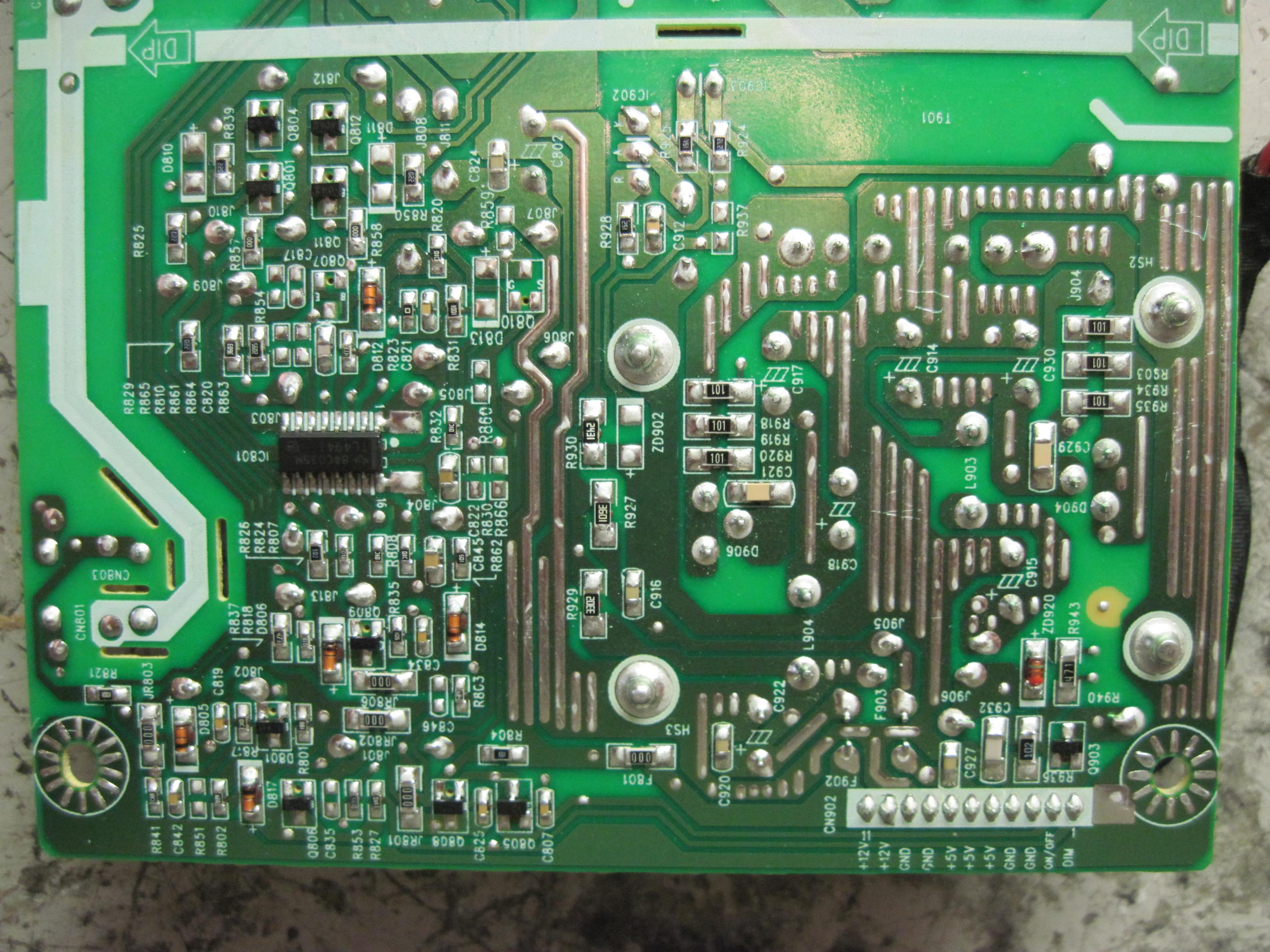 With those voltages listed I am pretty sure it is something on the power supply. I have checked everything I know how to check on it. There is one diode, D909, that I am getting .018 both ways when I check using the diode check on my DMM. It is in the red box in the pic. The MOSFET Q901 has voltage to the drain. I pulled it off of the board, and checked it. It is switching as it should. I am at a stand still at the moment. Any help will be greatly appreciated.