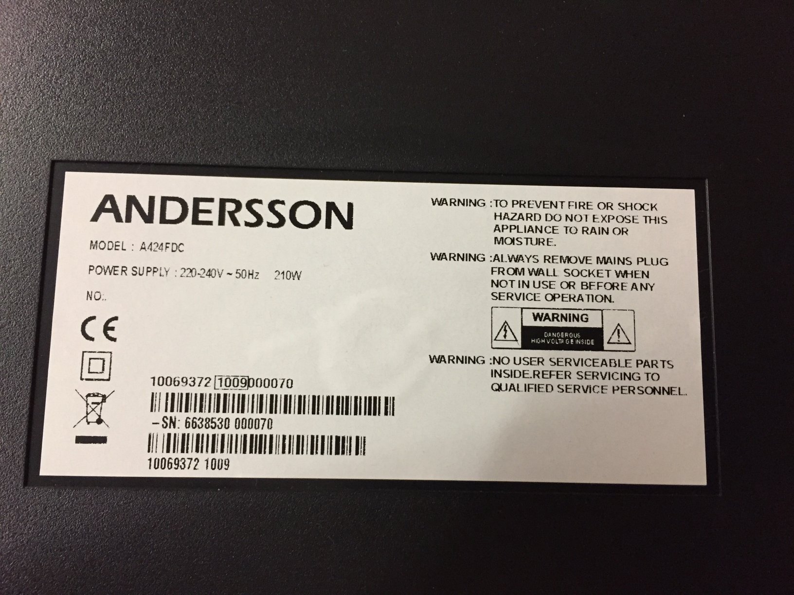 Vestel 17MB61-2 branded as Andersson A424FDC (42 inch LCD) in Sweden.