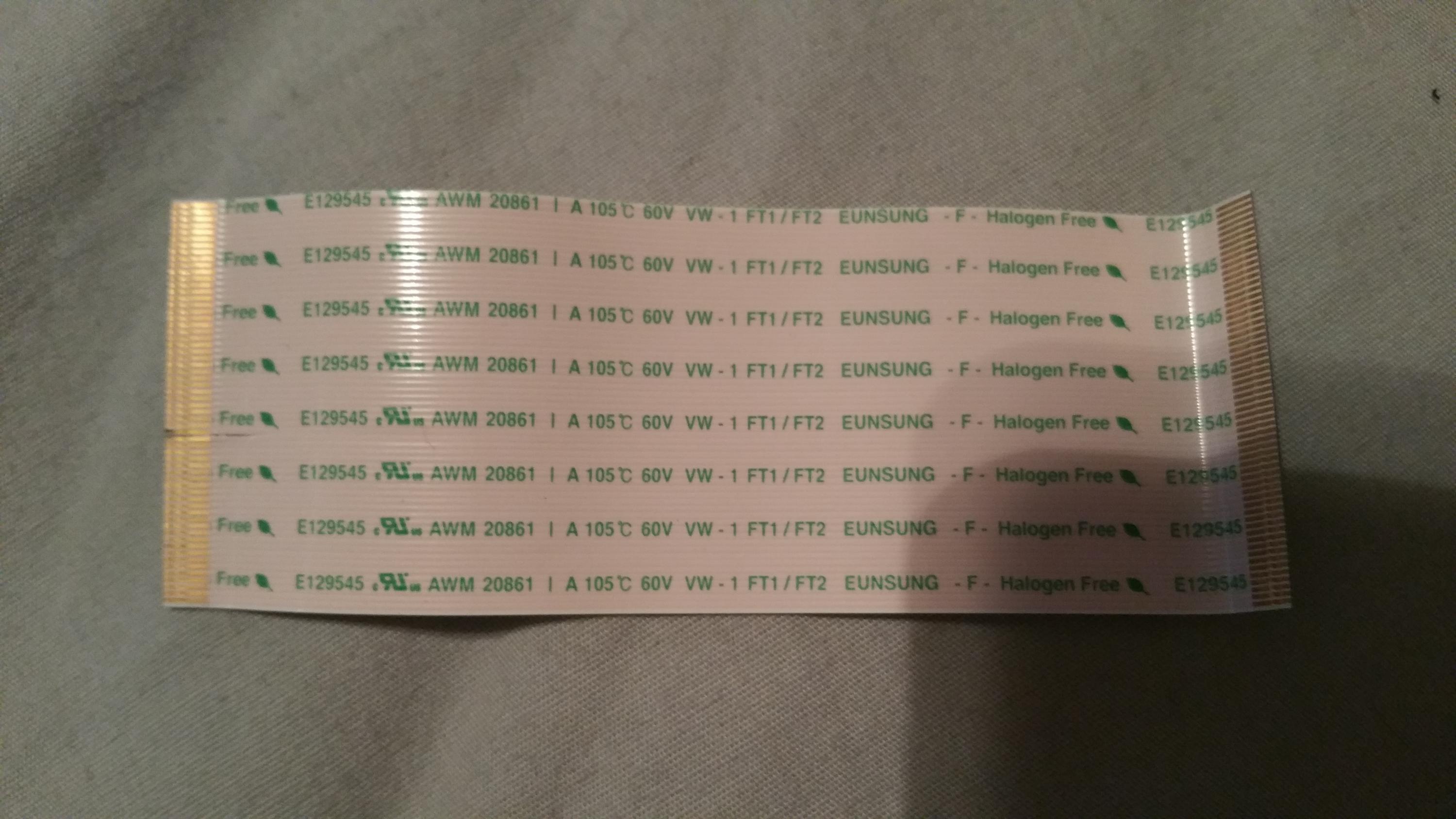 Does anyone know where I can buy replacement ribbon cable? It's about 3.25" x 1.25" and on the back it reads E129545 AWM 20861 I A 105C 60V VW - 1FT1/FT2 Eunsung - F - Halogen Free." I've attached a picture if that helps.