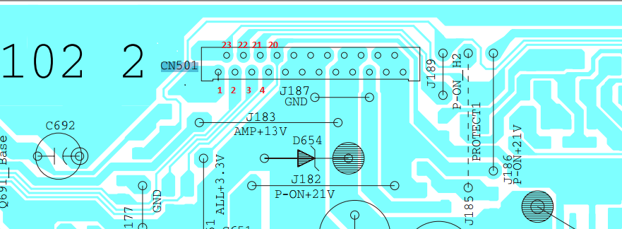 OKay so I followed flow chart no.3 of no picture and tested CN501 Pin 20-23 IF i labled correclty? could not find any mark besides pin one on CN501