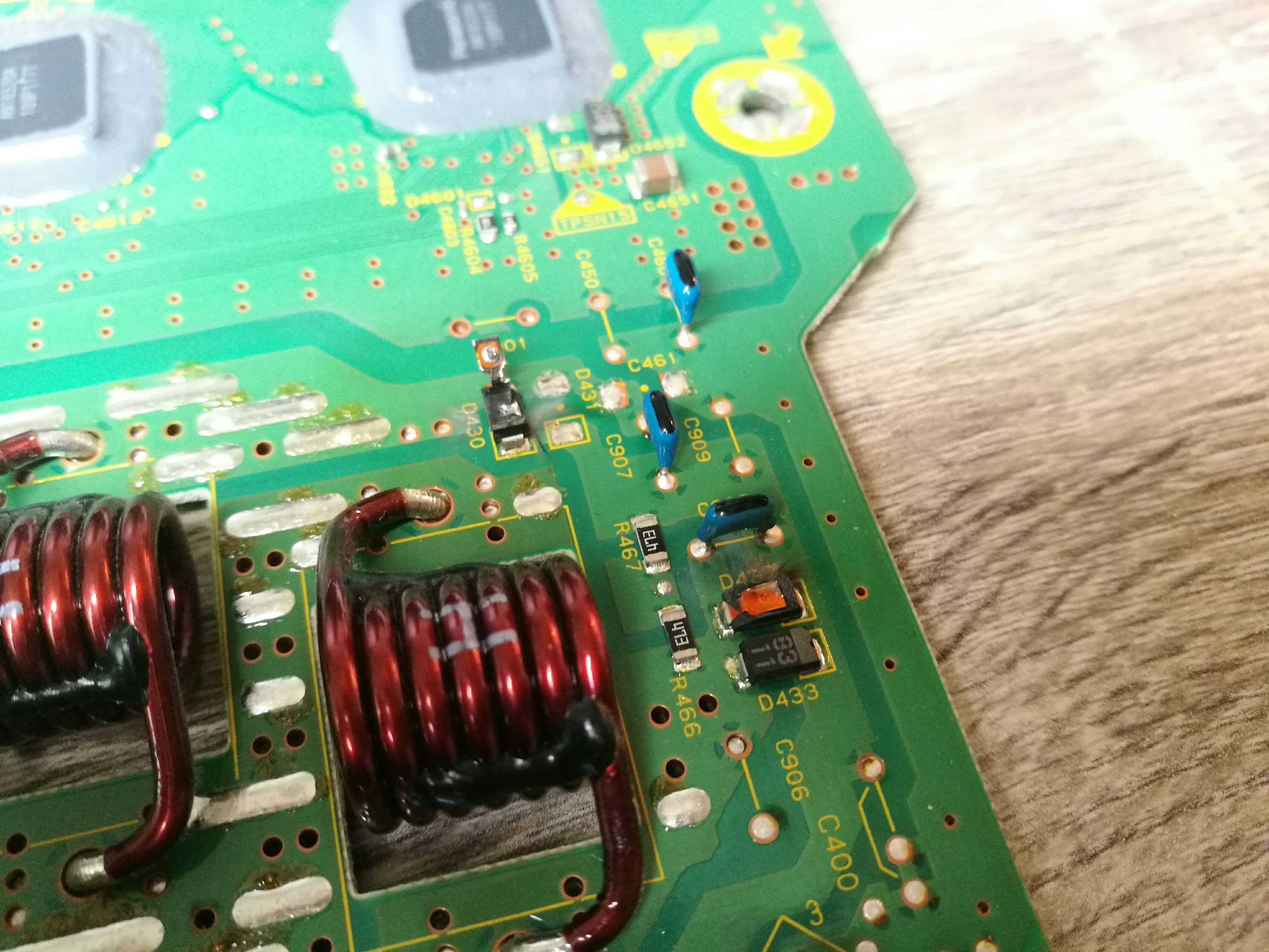 Fake 30F131 , RJP30H2A , DG302 and RF1501 blew most of the boards. On the pictures you will see boards that i received from people that tried to repair the 7 blink problem. Not only you will see "bad" soldering by those people but also fake parts and the results. Fake parts + not cleaning the board will result in blowing diodes/fets and fire!