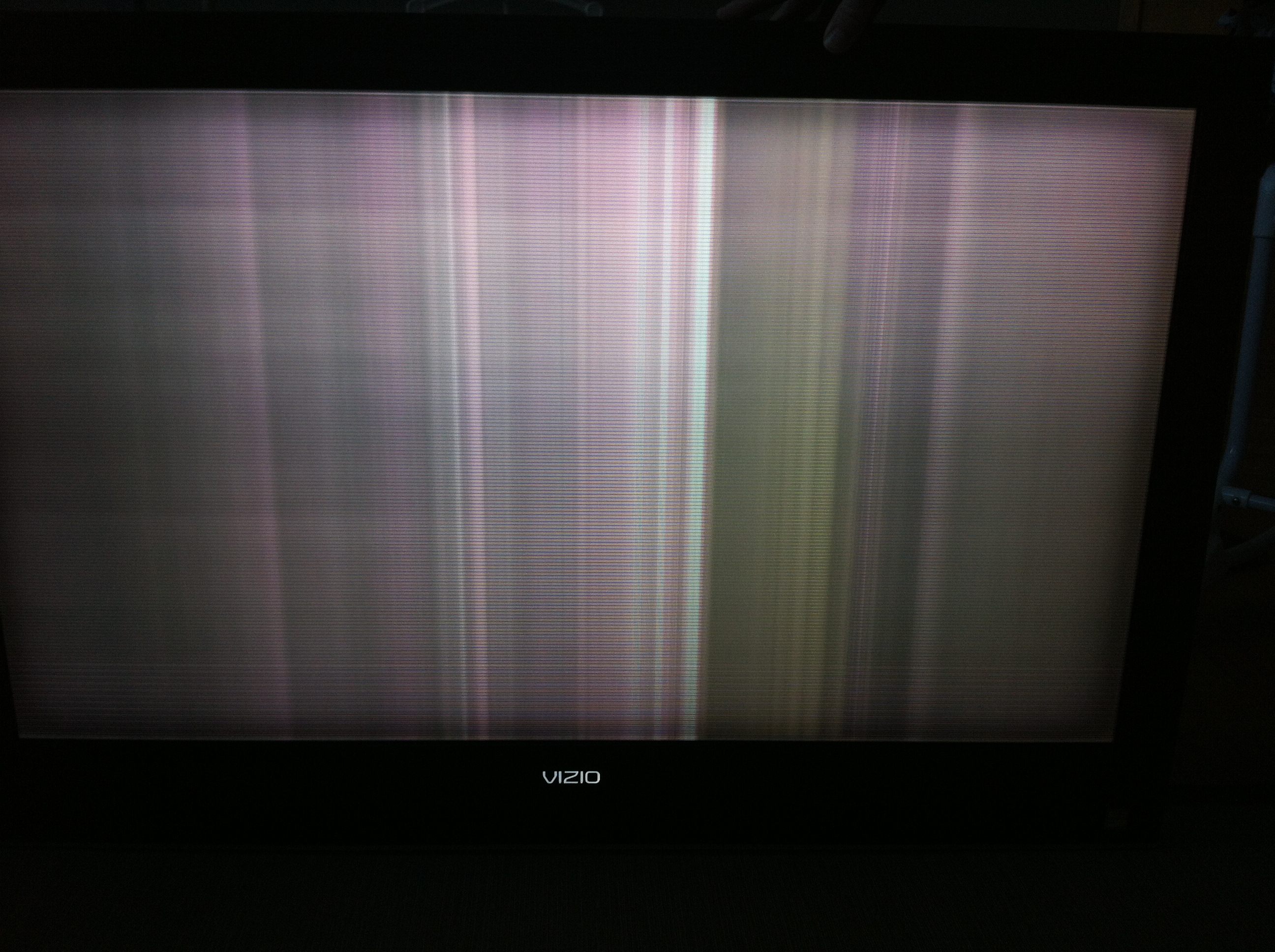 I have colored vertical lines on my LCD Vizio-oh. The sticker on the TV says 2009... They seem to alternate colors and brightness, they move on the screen, not just fixed in one spot. All inputs have the same symptoms. Sound is fine.