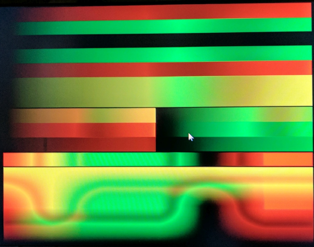 Have attached test images taken with same camera on working laptop and same display mirrored on TV HDMI connection. Have turned off most of the image 'enhancement' TV features. Original images are from https://en.wikipedia.org/wiki/List_o...d_RGB_palettes. Input from TV tuner or other sources shows errors that are similar in character.