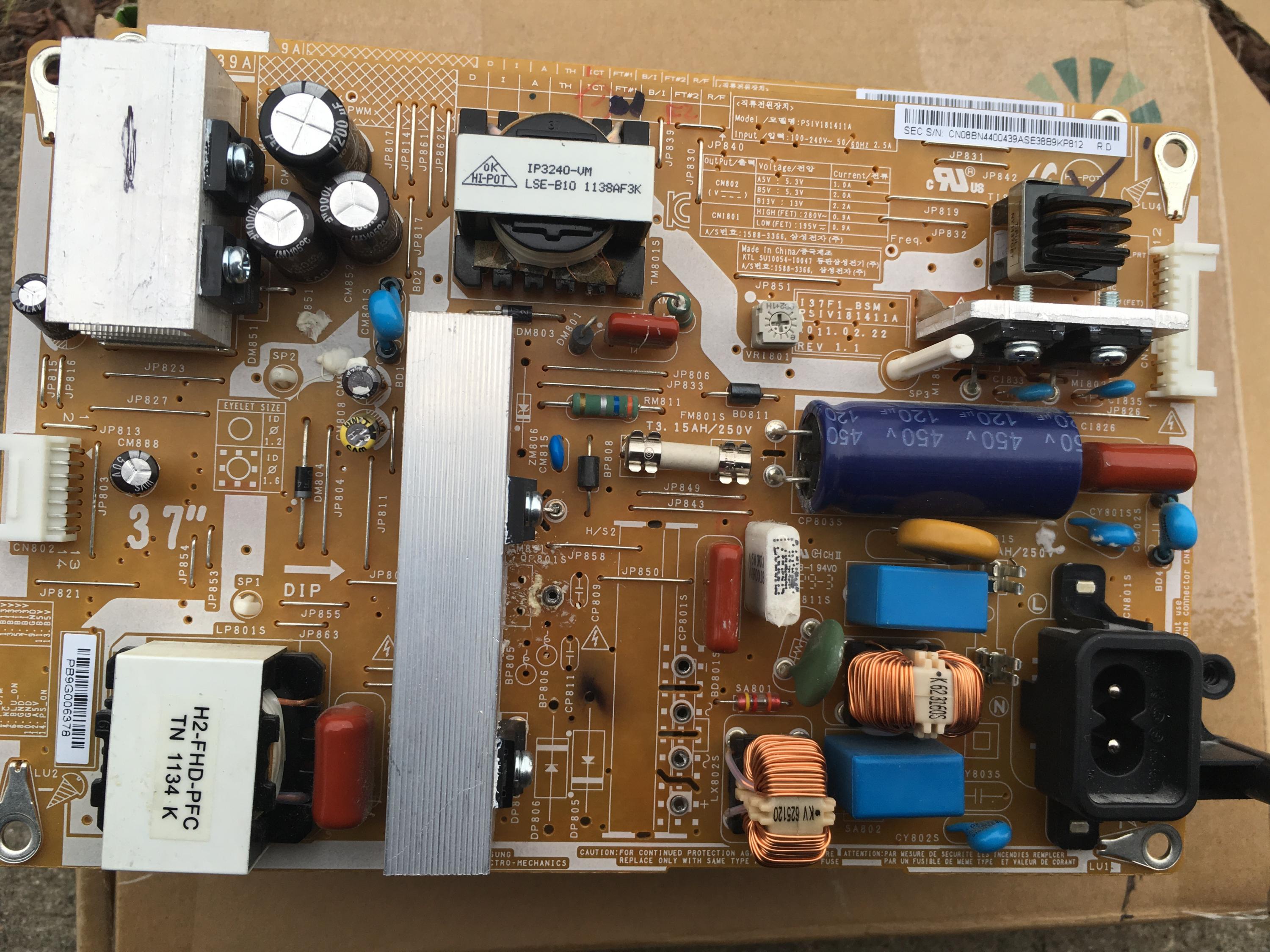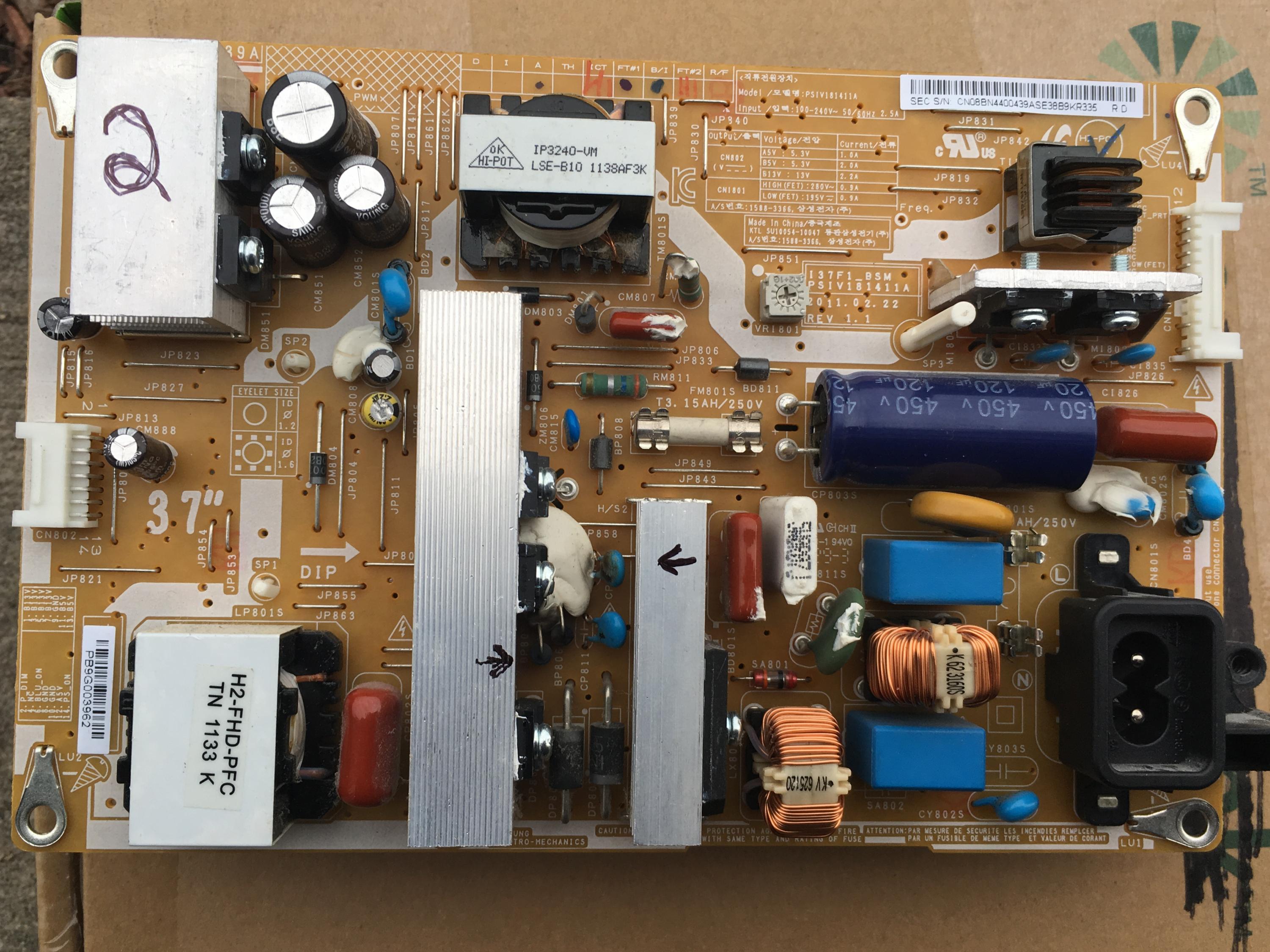 ended up getting 4 more from the hotel all with blown fuses. The person i get them from replaced the fuse in 2 of them said their was sparks lol. So I ended up with them. fixed one (gave to a friend), gave one to another friend he wants to try and fix it. 2 left and 3 power supplies all blown fuses. The fuse that was replaced fs8015 t5.0AH/250 was replaced with a 5.0a 250v slow blow glass fuse unsure if that added to the issue, will post pics of all 3 power supplies all 3 seem to have failed in the same location. replacing the power supply in the 2 tvs fixes the issue so I know it is just the power supply. Anyway I started pulling parts of one that was clearly burnt. In the morning I will post pics of all 3 front and back. all 3 show burnt marks see pic from edited shop jimmy was just figure there is more wrong then just these and am waiting for real fuses to come.