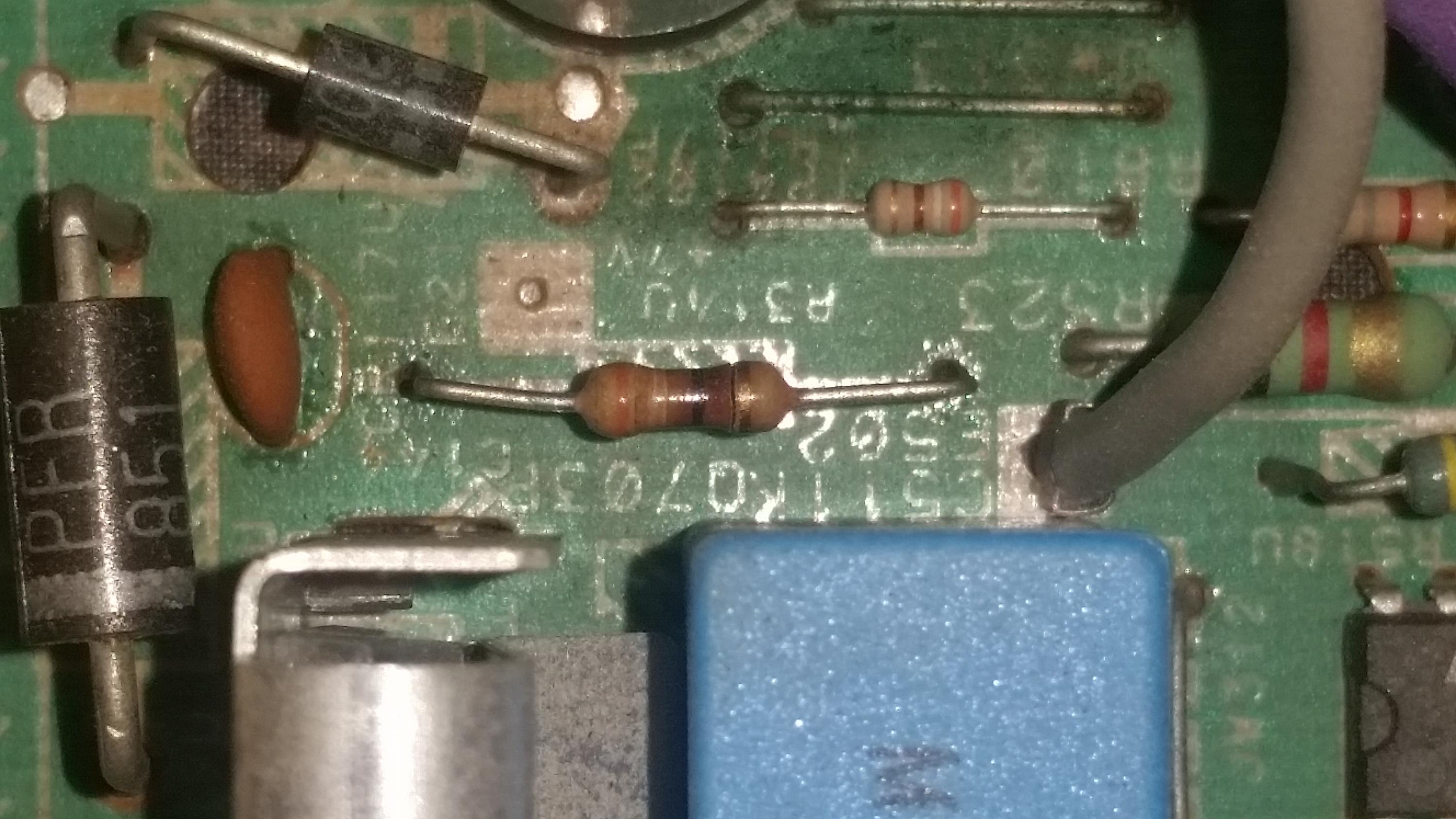 Hey guys, this is my first troubleshooting post here. Glad to be among you here in the forums. Ok, so I just picked up a 1995 RCA Proscan (PS35122) 35" CRT TV and so far it has no signs of life. When the TV is plugged in there is no standby light or power. I tried using the remote and the power button on the TV to no avail. I took the back off the TV and noticed what looked like a broken thermistor and also a broken resistor. Upon further inspection there appeared to be a stain on the PCB from what looks like a leaking capacitor maybe, hard to tell. Since the back of the TV was off I checked the voltage on the power supply and it checked good. Also checked the main fuse and it was good. One thing I thought was strange was I was taking the board out of the housing to dust it off to do a closer inspection and I noticed when I went to ground the anode there was no spark. This TV has been sitting up for a while so maybe that's common for it to have no spark when grounded. So that's basically where I am on it. There are a couple of parts I can replace, but I'm having trouble identifying the thermistor, maybe someone can help with the ID? Also, this is my first go at a CRT TV so any help or guidance is much appreciated. If anyone would like to see more pics of the board or any part please let me know, I'd be happy to upload them.