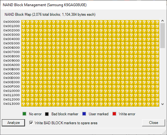 Here is an approximate programmer log for bad blocks, indicating at which addresses they are located: