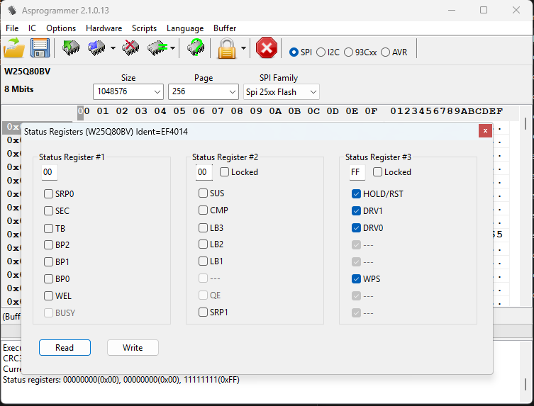 For 25Q80 (0x98.0x2) there is nothing to install, it didn’t need to be touched at all, it is for T-con, status registers are installed after recording dump...