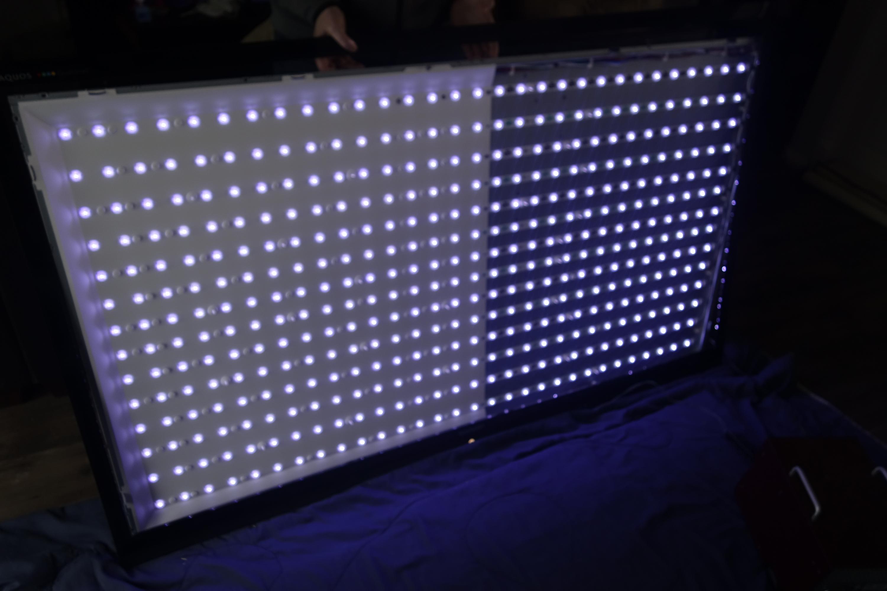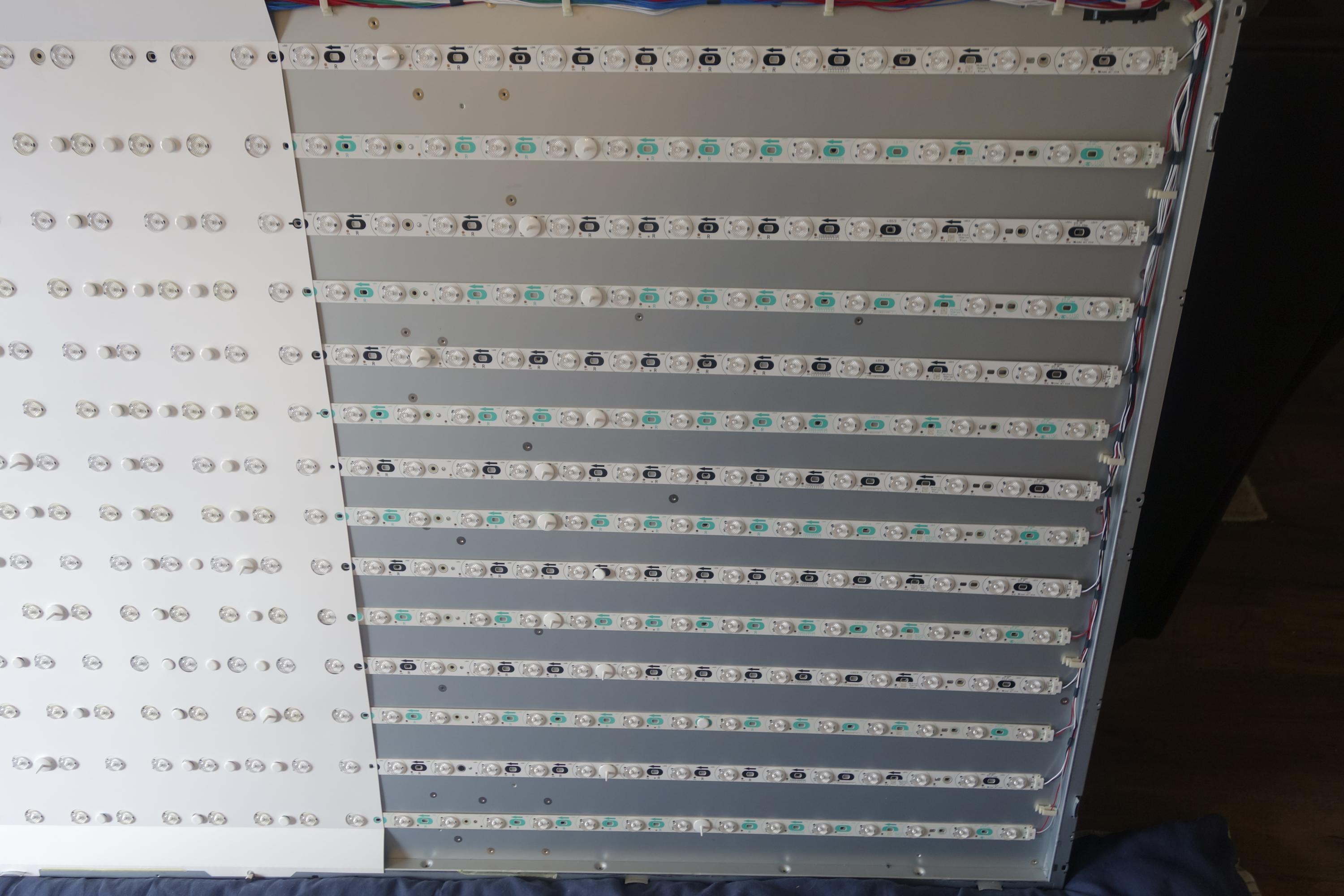 I thought I had a backlight issue so I attempted the laborious process of removing the lcd screen on this bad boy. Unfortunately I cannot find any issues with the backlighting and was hoping that someone could help me troubleshoot. As you can see from the pictures below, all of the leds come on just fine. In order to get them to come on, I have to use Vol+ and Channel-. If I attempt to get into the service menu by using Vol- and Input the boomerang status light goes solid for 8 seconds and looks like everything is going to work, but then it starts throwing the 1-1 code again, so no service menu for me!
