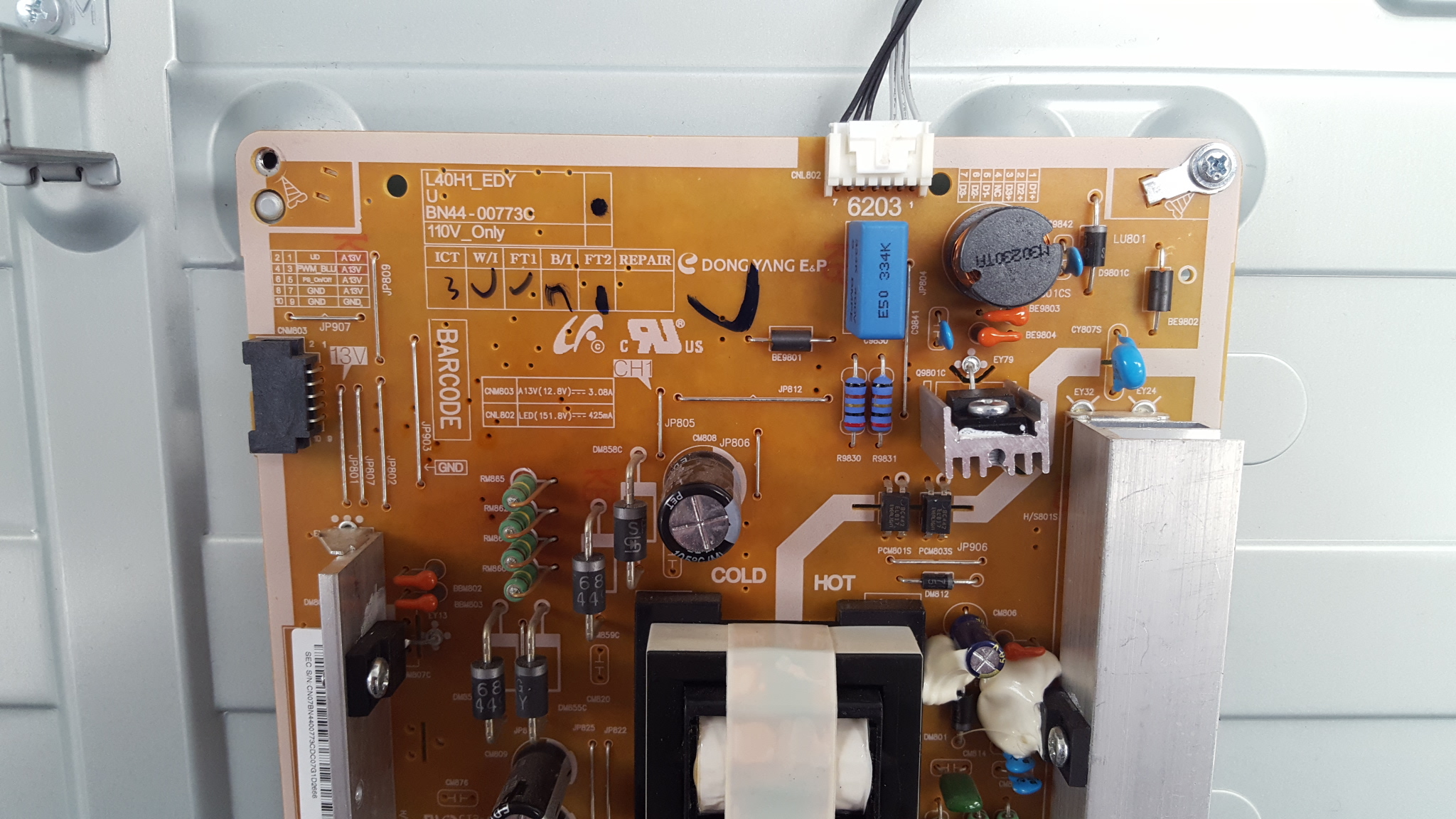 All measurements to main board from CNM803 look within tolerance. Bridge rectifier readings are good. It's the measurements from CNL802 that I'm concerned about. Power board P/N is BN44-00773C.