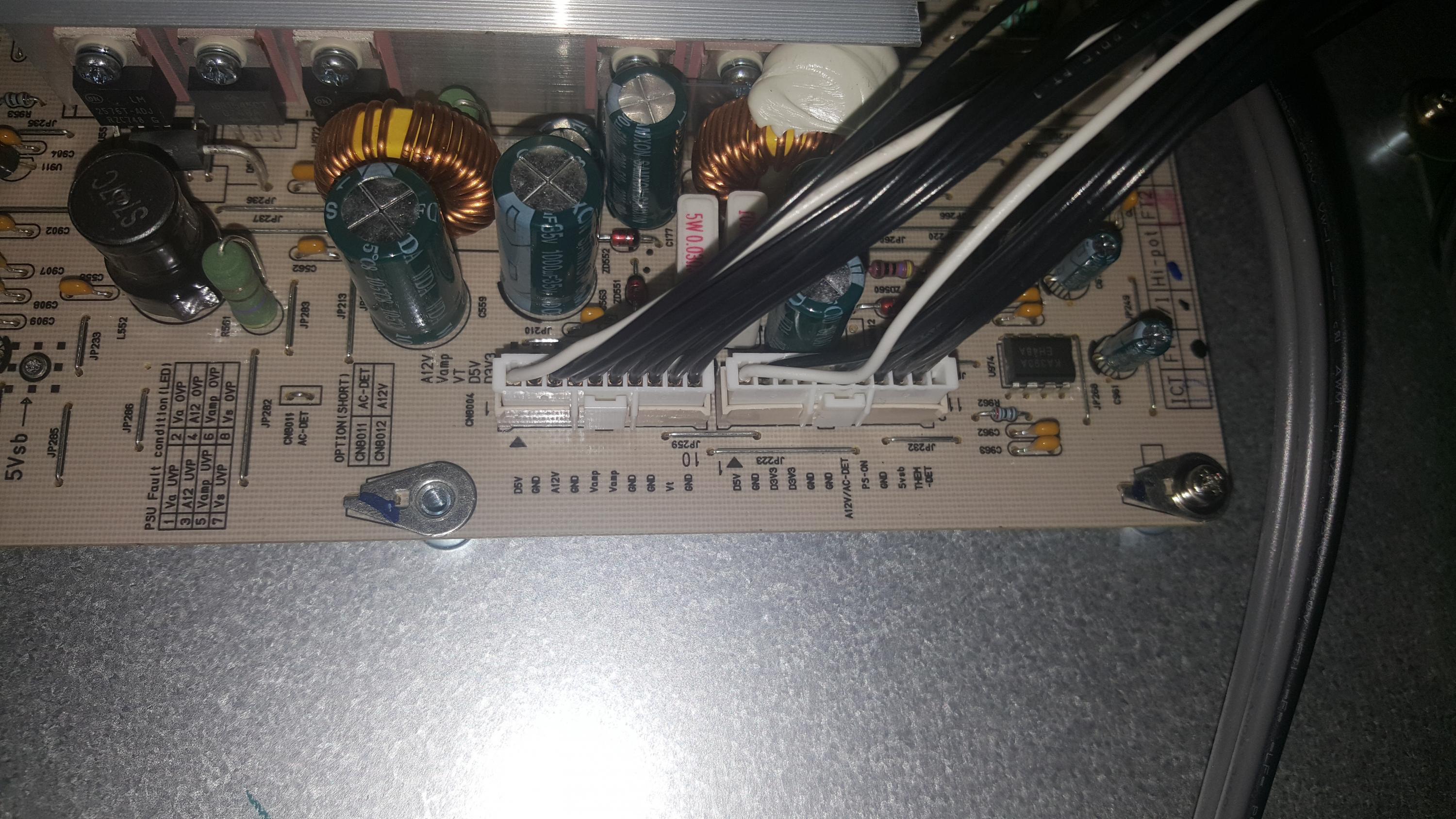 Disconnect all from psu jumper pson and vson power supply stays on until i unplug. All voltages are present except a12v/ac-det is 2.62v on connector in picture. All fuses are good. At a loss where to test from here.