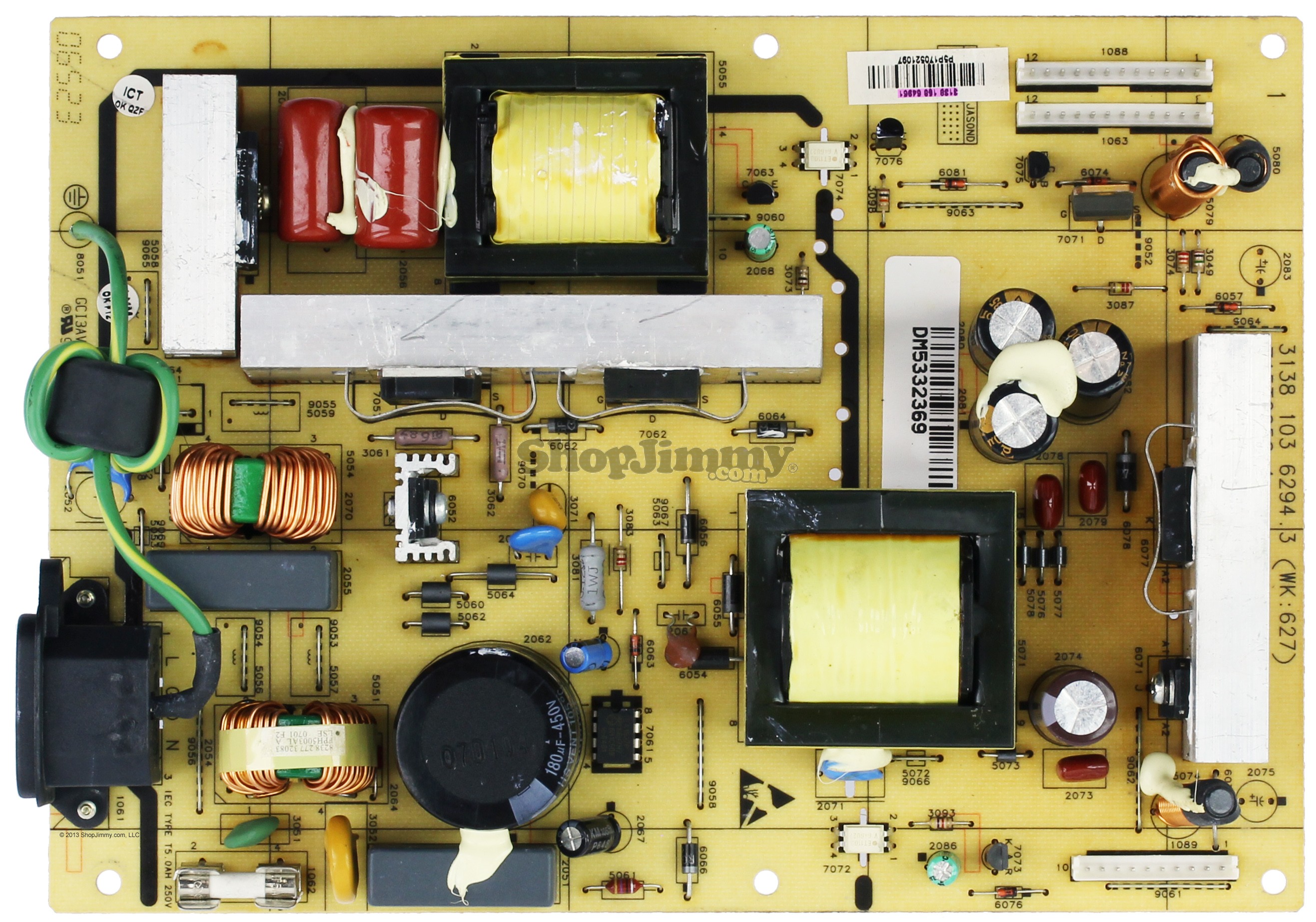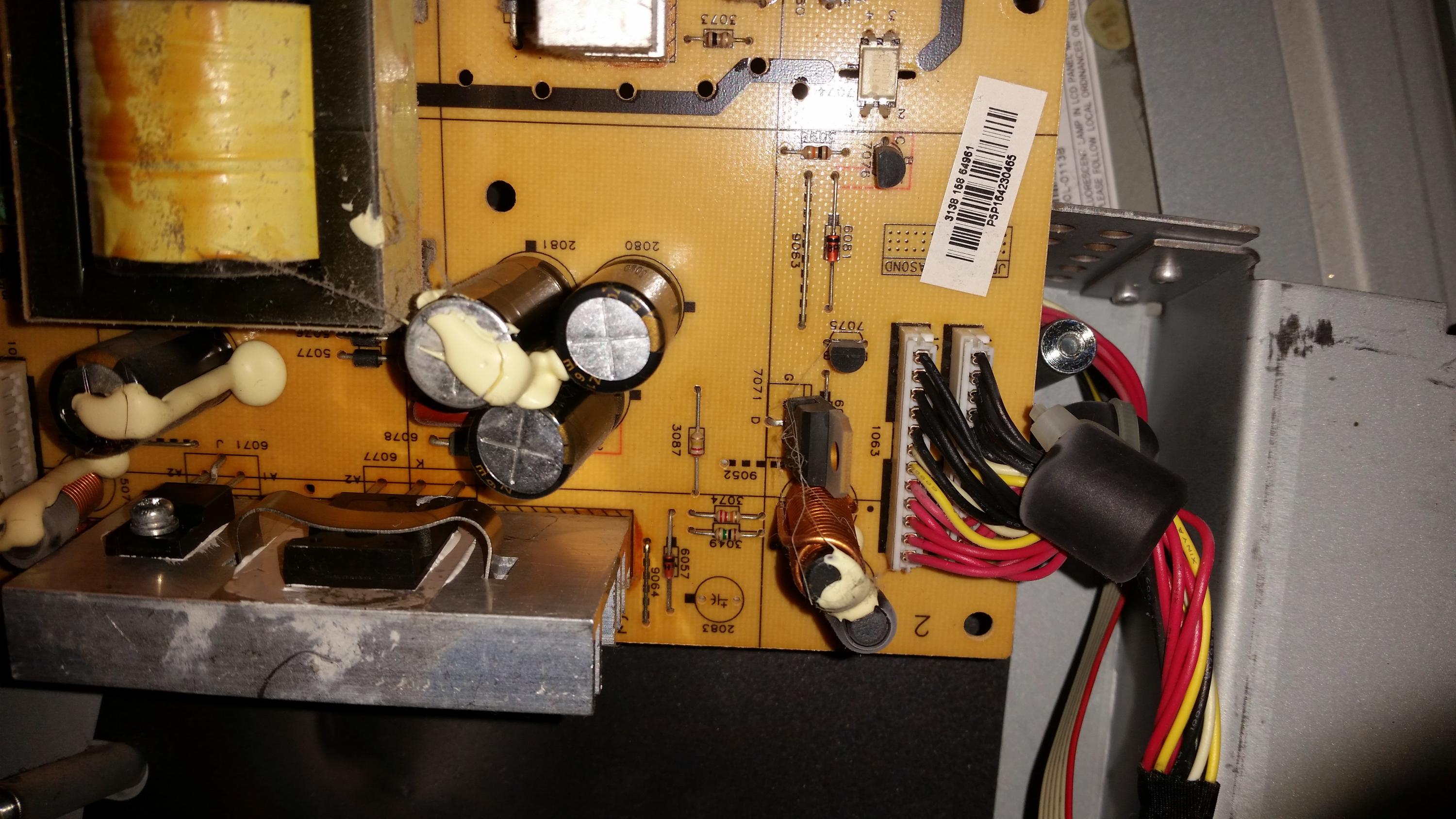 I picked up a Magnavox 37MF231D/37 Television (broken) last week. It wasn't powering on at all when I first got it. I took out the power supply board and replaced 4 caps (in the picture). When I plugged it in, there is a brief light that shines on the inverter board, and the green led under the on/off switch flashes. But that's it. The tv won't turn on.