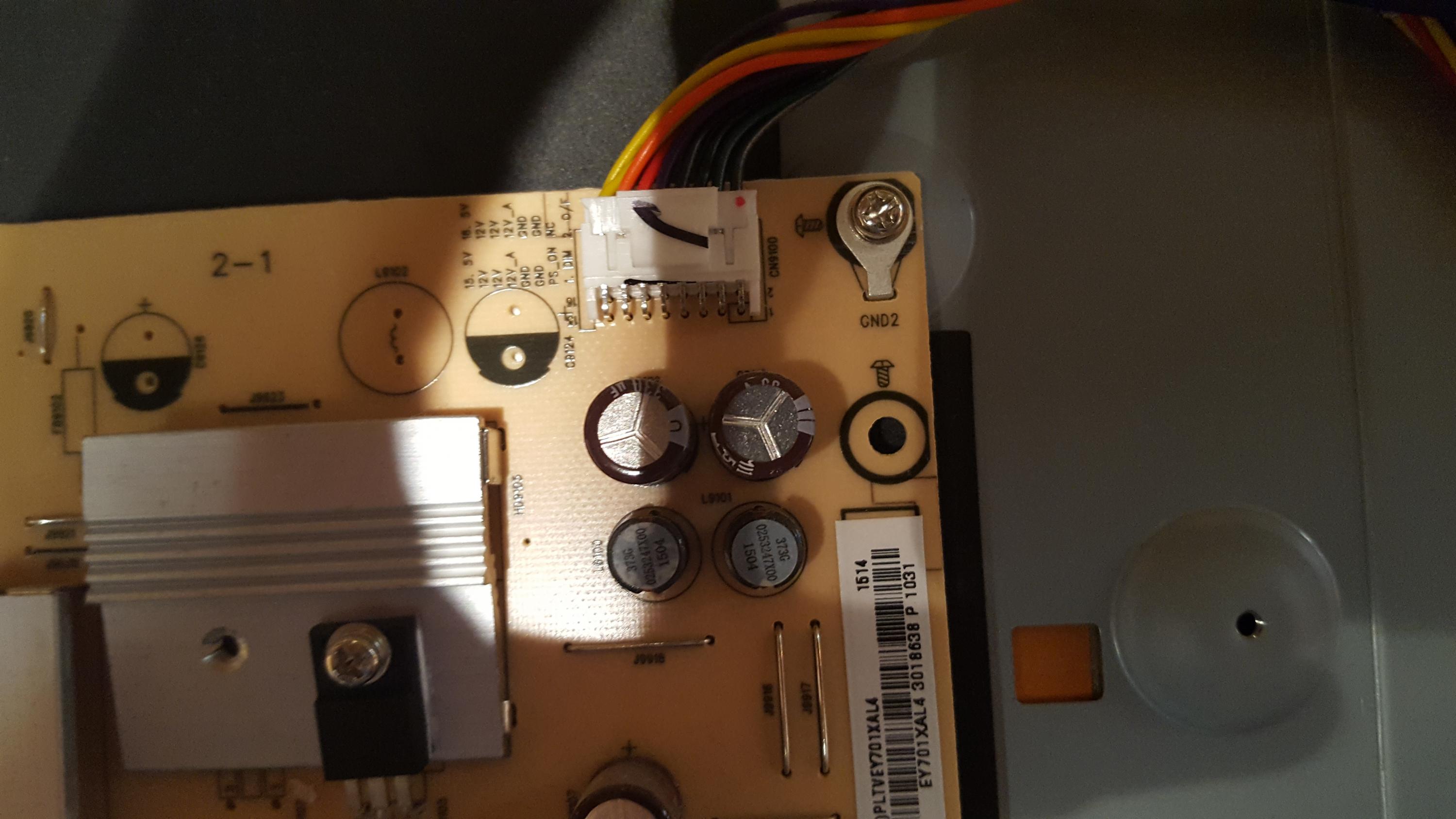well i tryied posting pics from my phone don t know where they went hit upload and then nothing. anyway i have 64.8 volts going to i guess the leds behind the panel. i seem to be missing a 15.5 volt on the psu cable that goes to ligic board other voltages are right on that connector the only one maked what they should be. can anyone help