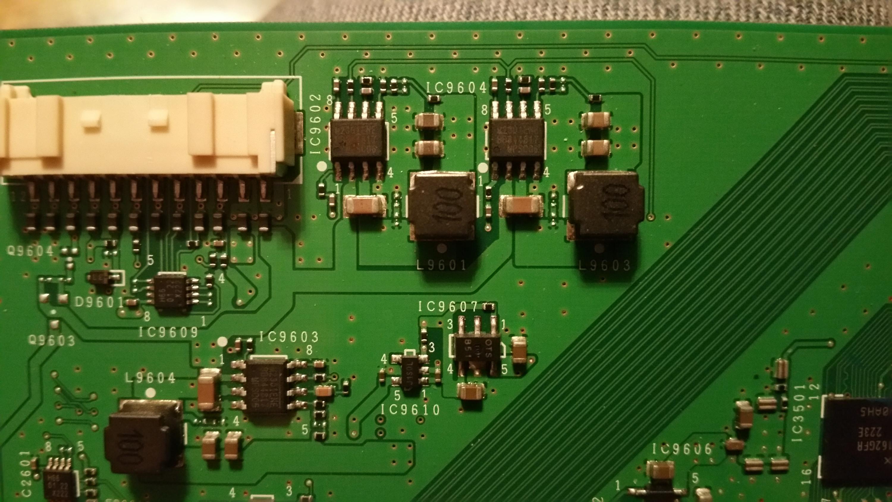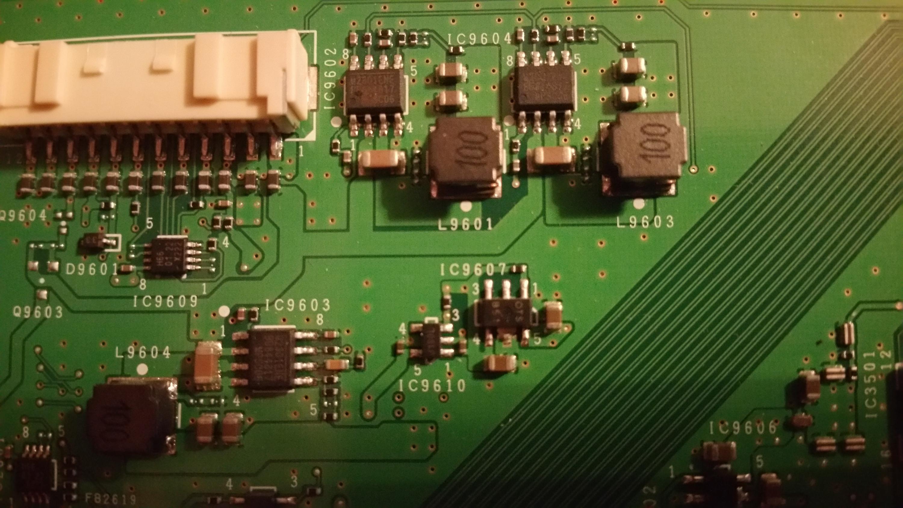 Hello if anyone has any guidance I have a main board from a 60" Sharp that has issues from a power surge and from what I un derstand it is the eeprom or the voltager regulators or all of the above. The board-Sharp DUNTKKF905FM04 (KF905, QPWBXF905WJZZ) Main Board. I'm opting to swap these components out with a programmed eeprom and looking up the votltagre regulators through Mouser or digi-key. I don't know which are which since they all are 8 legged IC's- can anyone tell me where exactrly the eeprom and voltage regulators are located on this board?