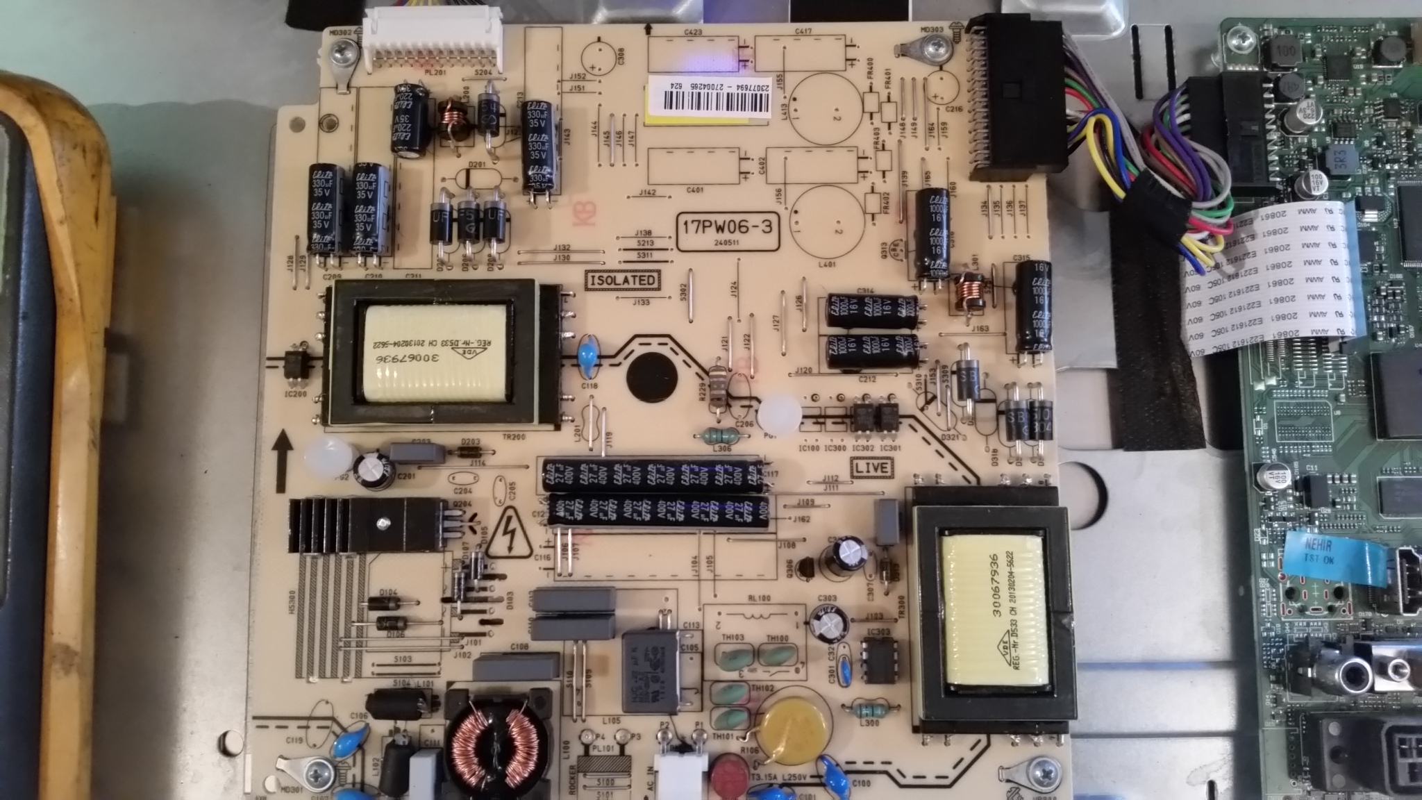 Hello all, I have here a tv a friend gave me, It stopped working for him, No power at all, I had a quick look and AC side seems fine but the DC side is unlabled so I'm not sure which wires to test,