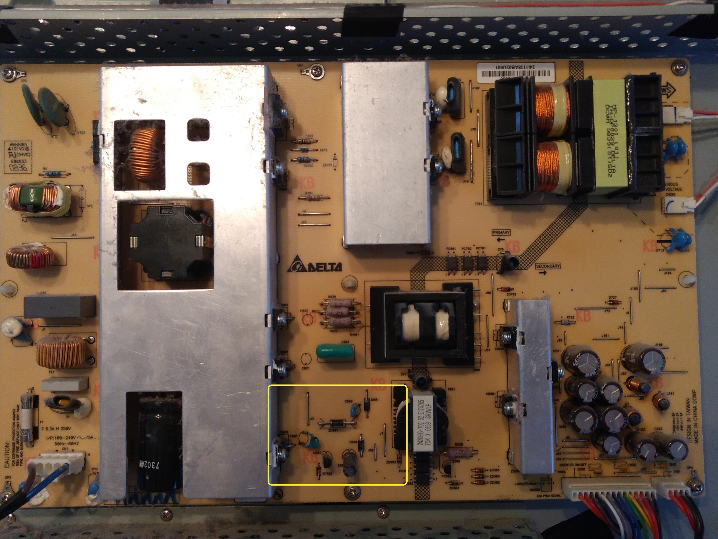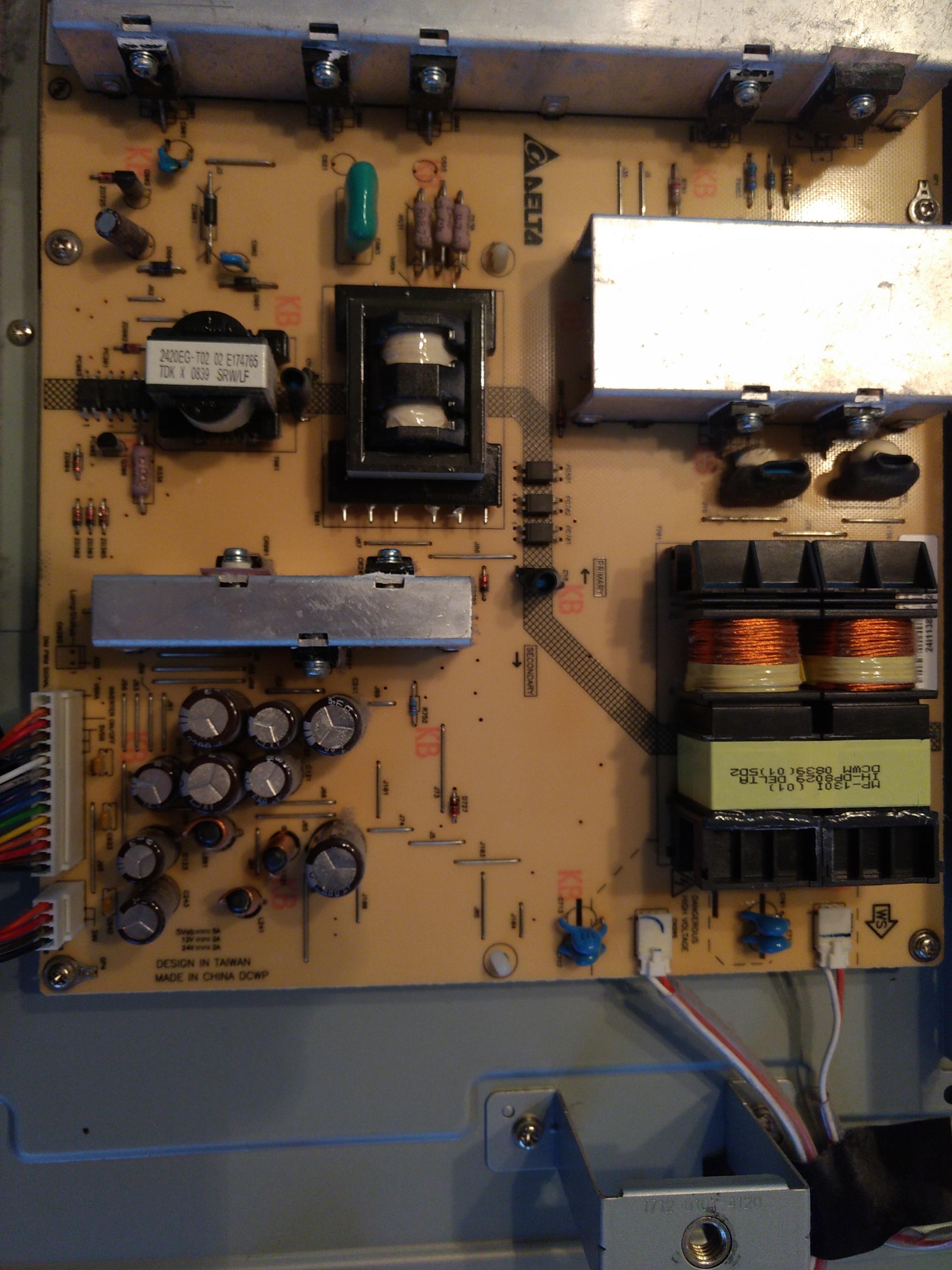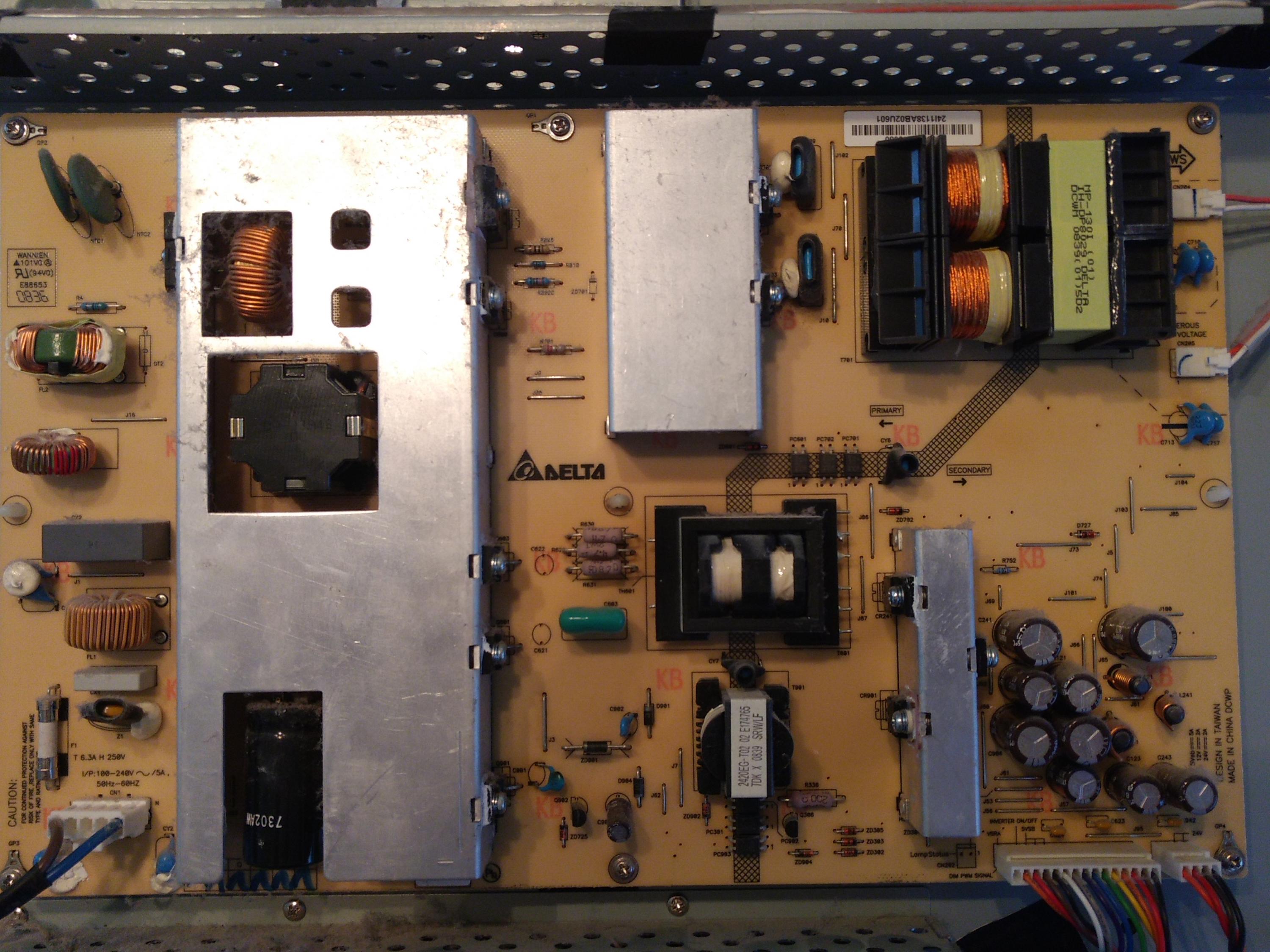 I have a Visio VO47L FHDTV30A that will not power on. If I hit the power button on the side of the TV, not using the remote, the Visio light on the front of the TV does not indicate any power. I am very familiar with using a volt/ohm meter having done in plant electrical and house wiring. I am however, a novice at electronics but have always had an interest in learning the craft. There is power to the TV, and the 250 volt fuse is not blown. As you can see in the attached pictures, there appears to be a blown capacitor. Would that be enough to cause the no power condition.