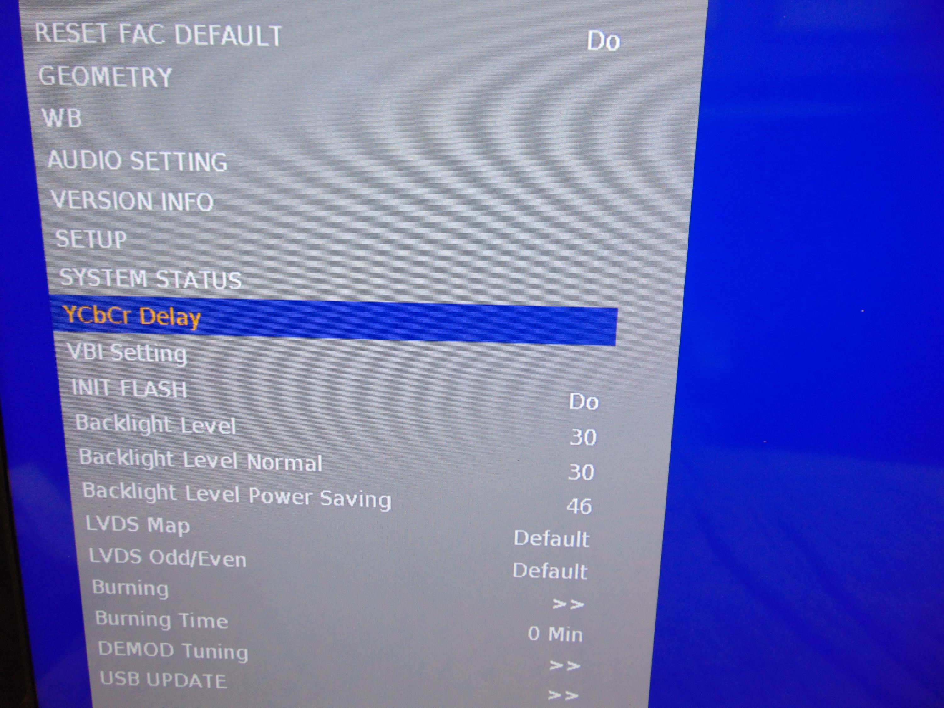 Picked up this tv that had no backlights, which after testing, determined to be a bad eeprom. I ordered a replacement from SJ and installed it. I now have a perfect picture.....except that it is upside down. I accessed the service menu but can't find an option to flip the image. Anyone know what setting it is? I've attached a pic of the service menu options.