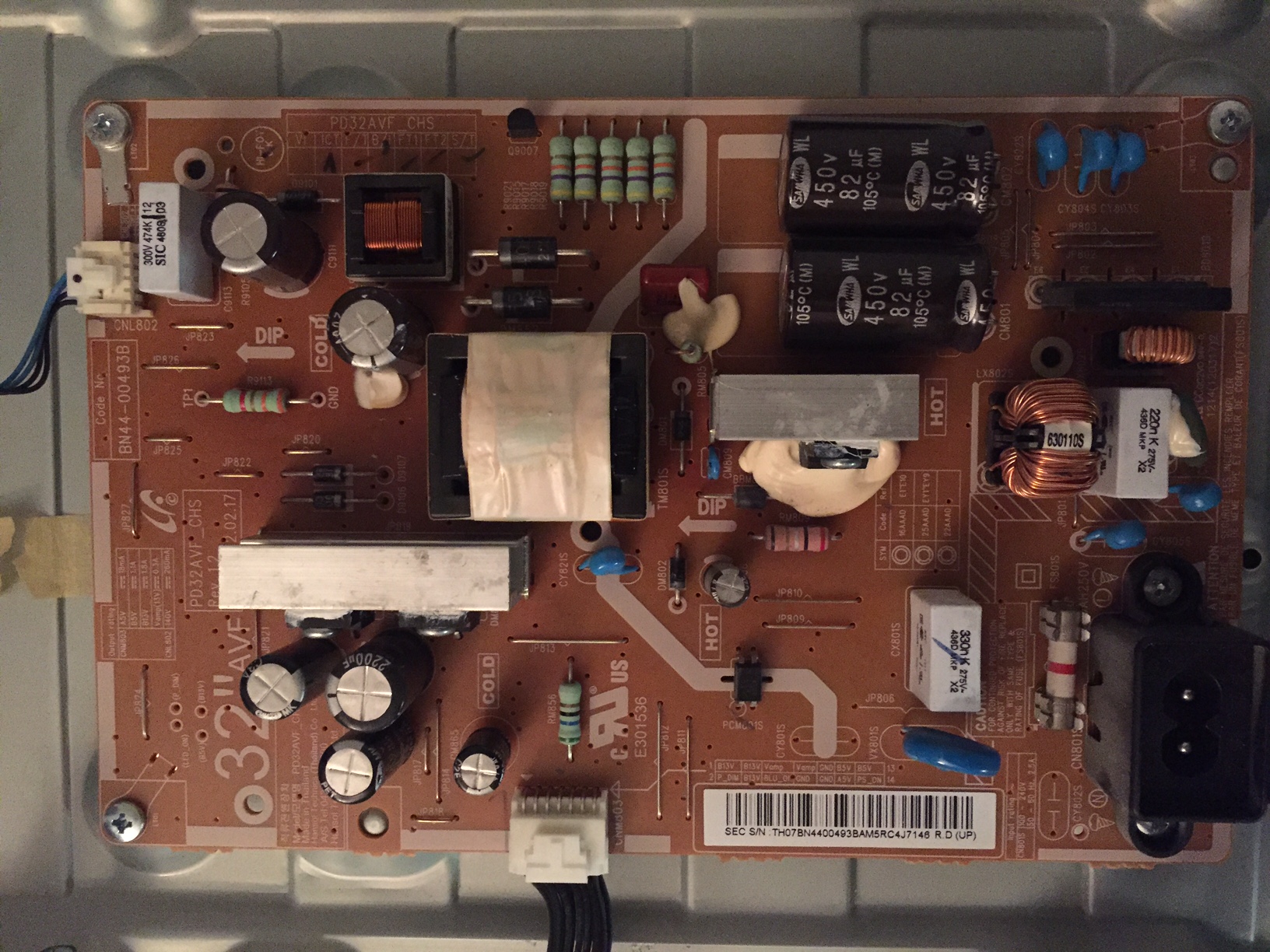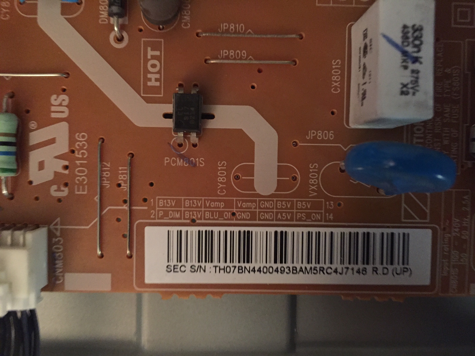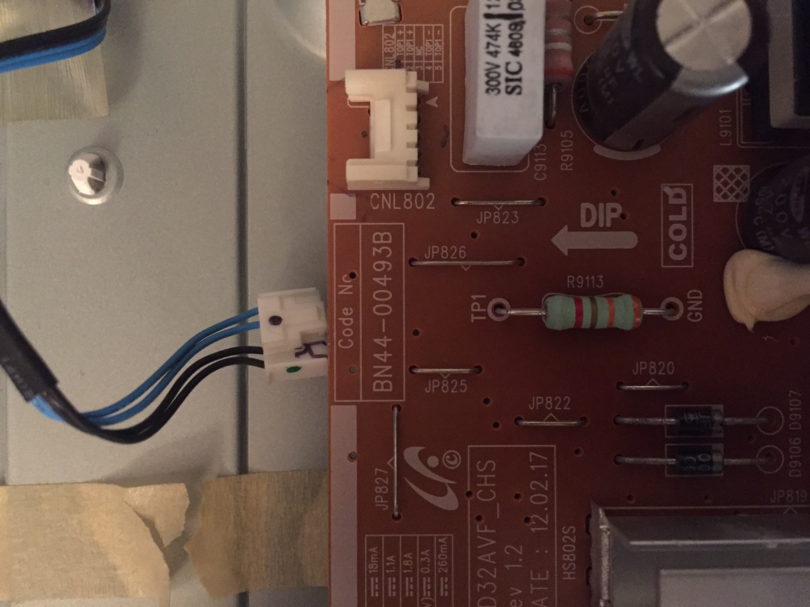 power board BN44-00493B, only getting 3 volts from the board to the LED plug.
