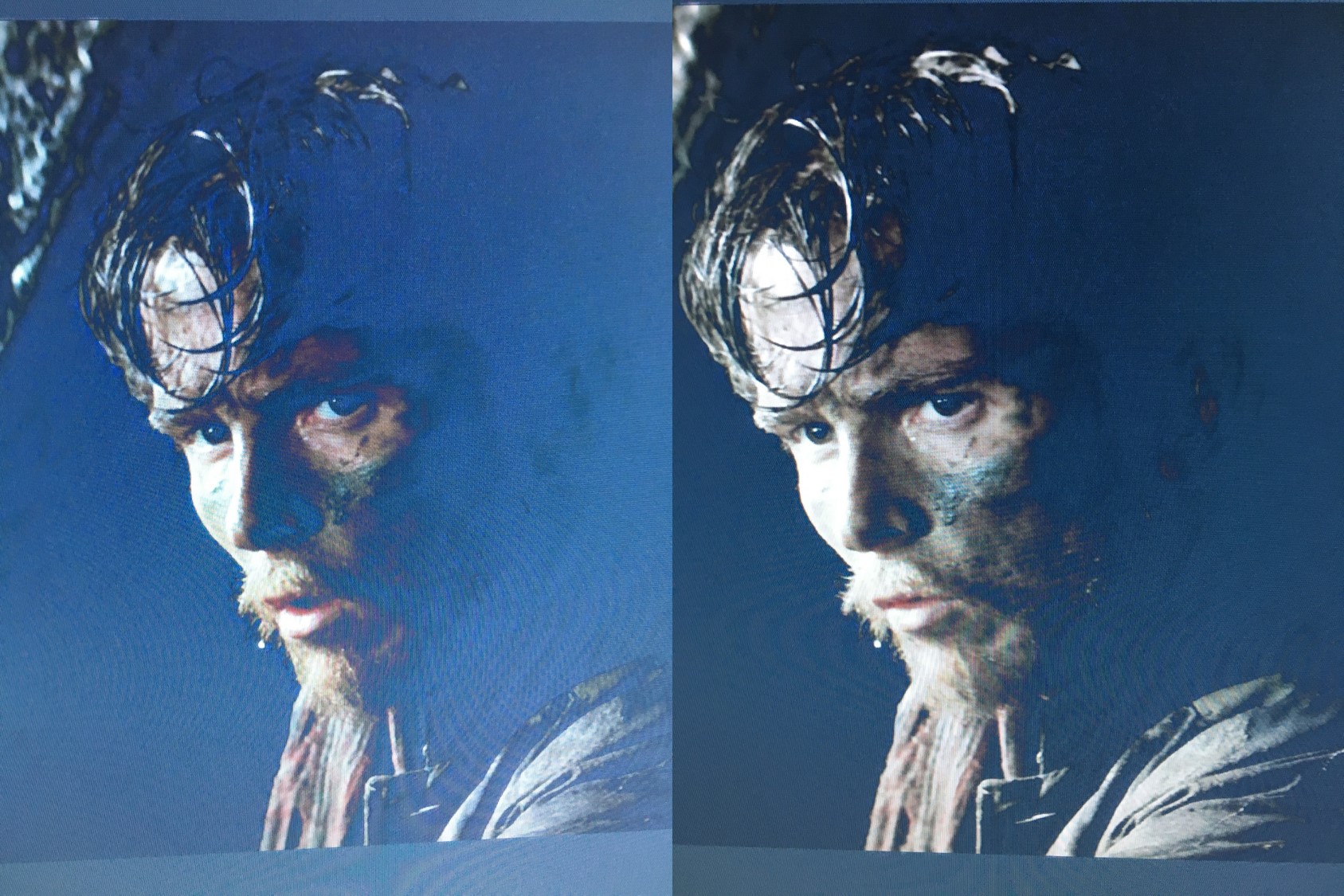 So I "acquired" one of these for free the other day and it's working but has a pretty bad picture. I put a blu ray movie to it using HDMI and skin tones look reasonable but the shadows / darker areas not so much... Attached are two images. Left on each is with all settings at 50% and right is with contrast cranked to 100%. I noticed on the settings menu that there's all sorts of pre-set (cinema, soft, bright) and the "bright" seems to look the "best" but is still off.