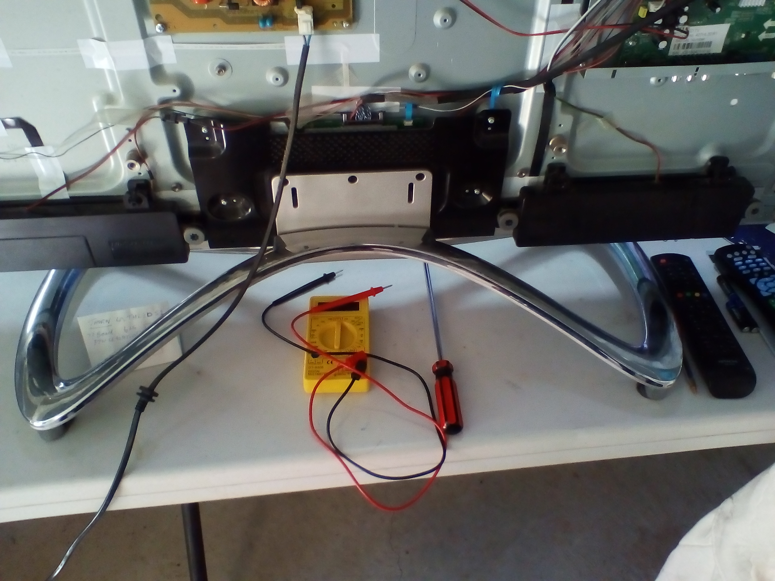 Thanks dskall I was afraid someone would say that! Will take the voltages again then pull the main to see where eeprom is if marked - nothing much found on search under Thorn brand but the stand is a large oval chrome spiral affair that may bring forth other better known name - will take pic for post.Comment