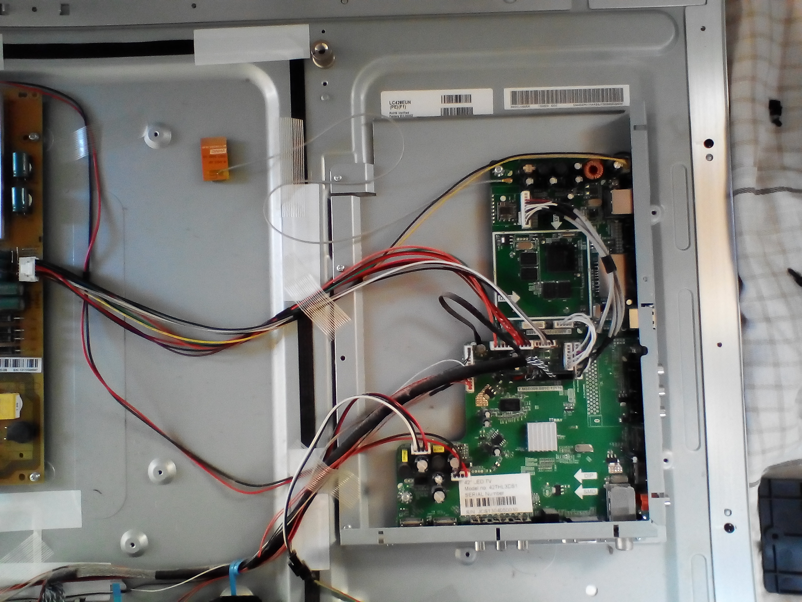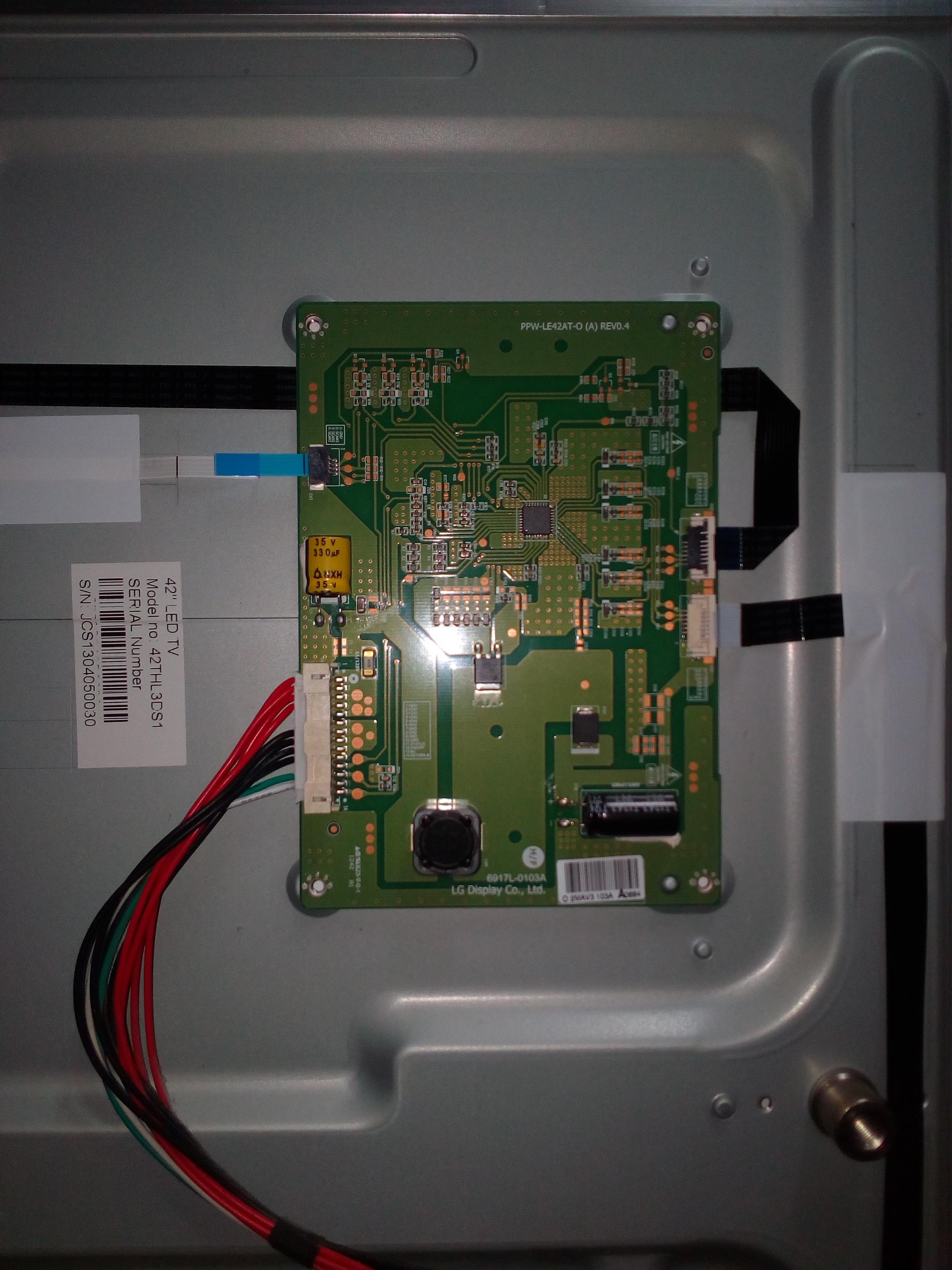 Hi Budm the panel is LC420EUN (PE) (F1) and the tcon and led circuit board (which I refer to as inverter) are also by the LC display co. Also I now find this set is 3D as well as Smart. Will try for clear pics in sunlight tomorrow as flash reflecting too much. Fuses on both boards are OK and no obvious problems.Comment