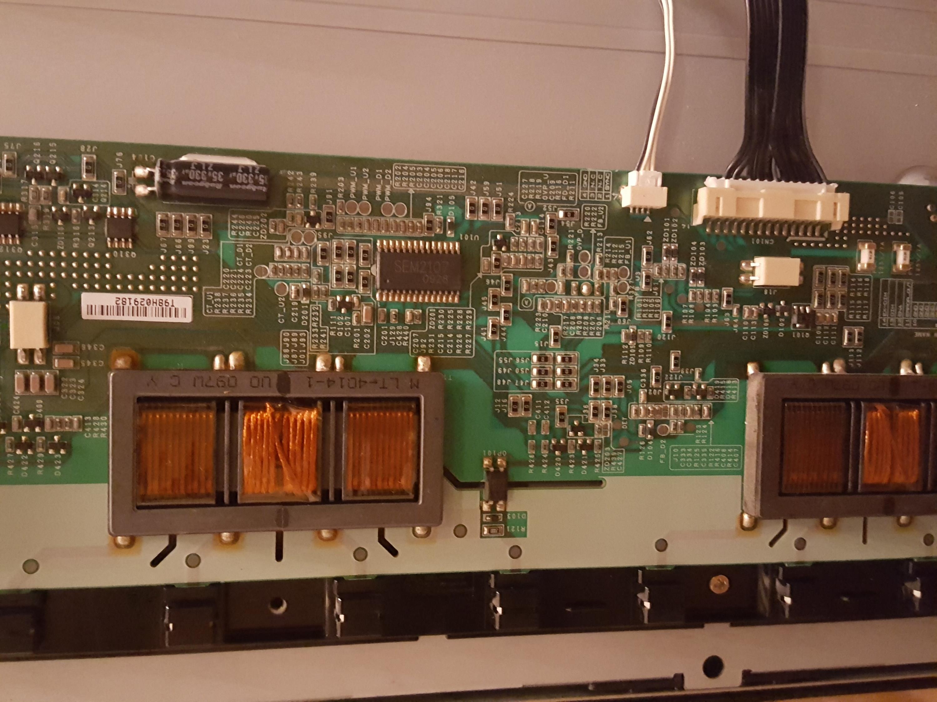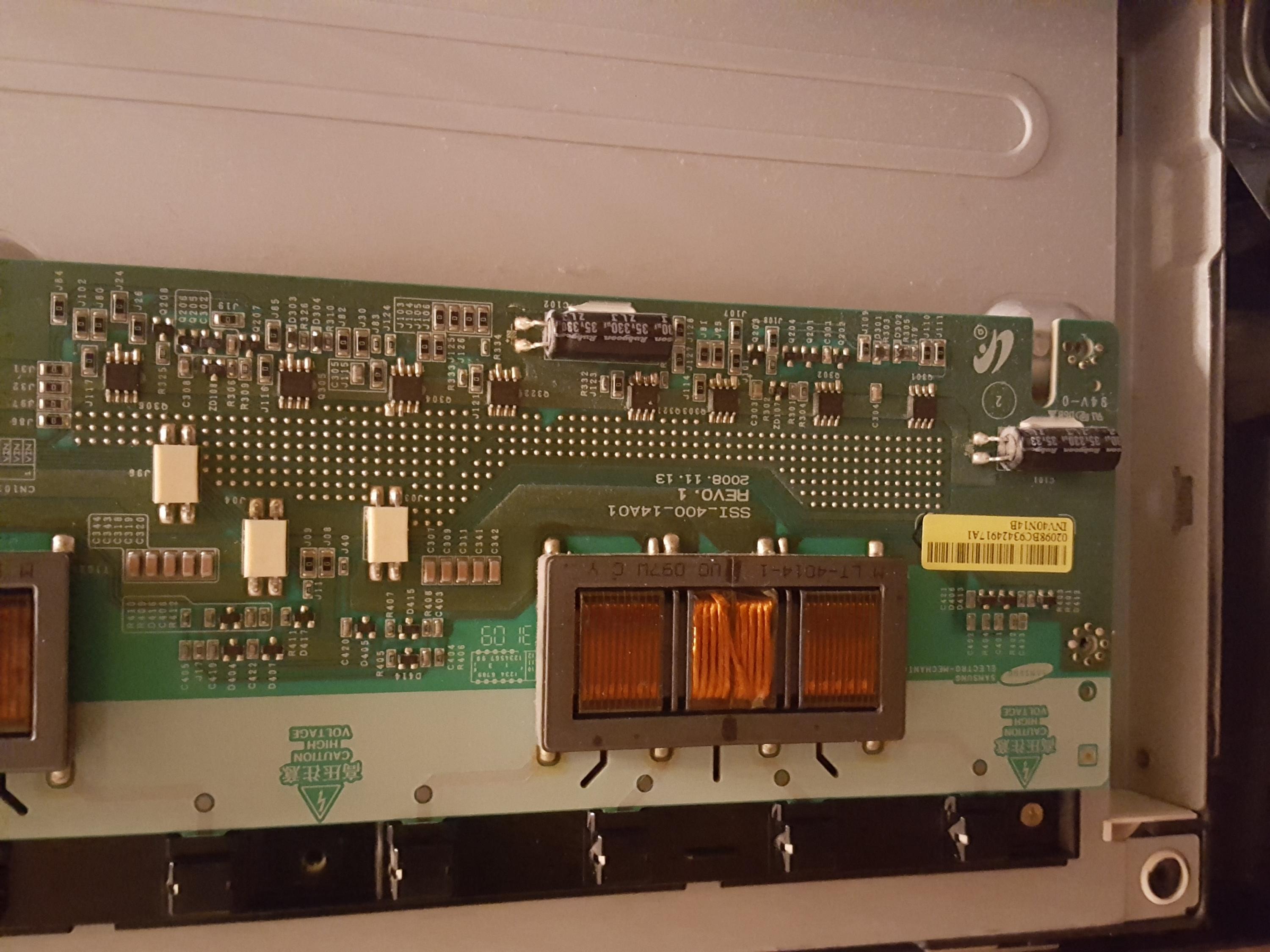 First, the television kept rapidly power cycling. I've warmed up the capacitors with a hairdryer, and after 3 dimmed red blinks, the backlight turned on, then turned dim, and no picture was present on the screen.