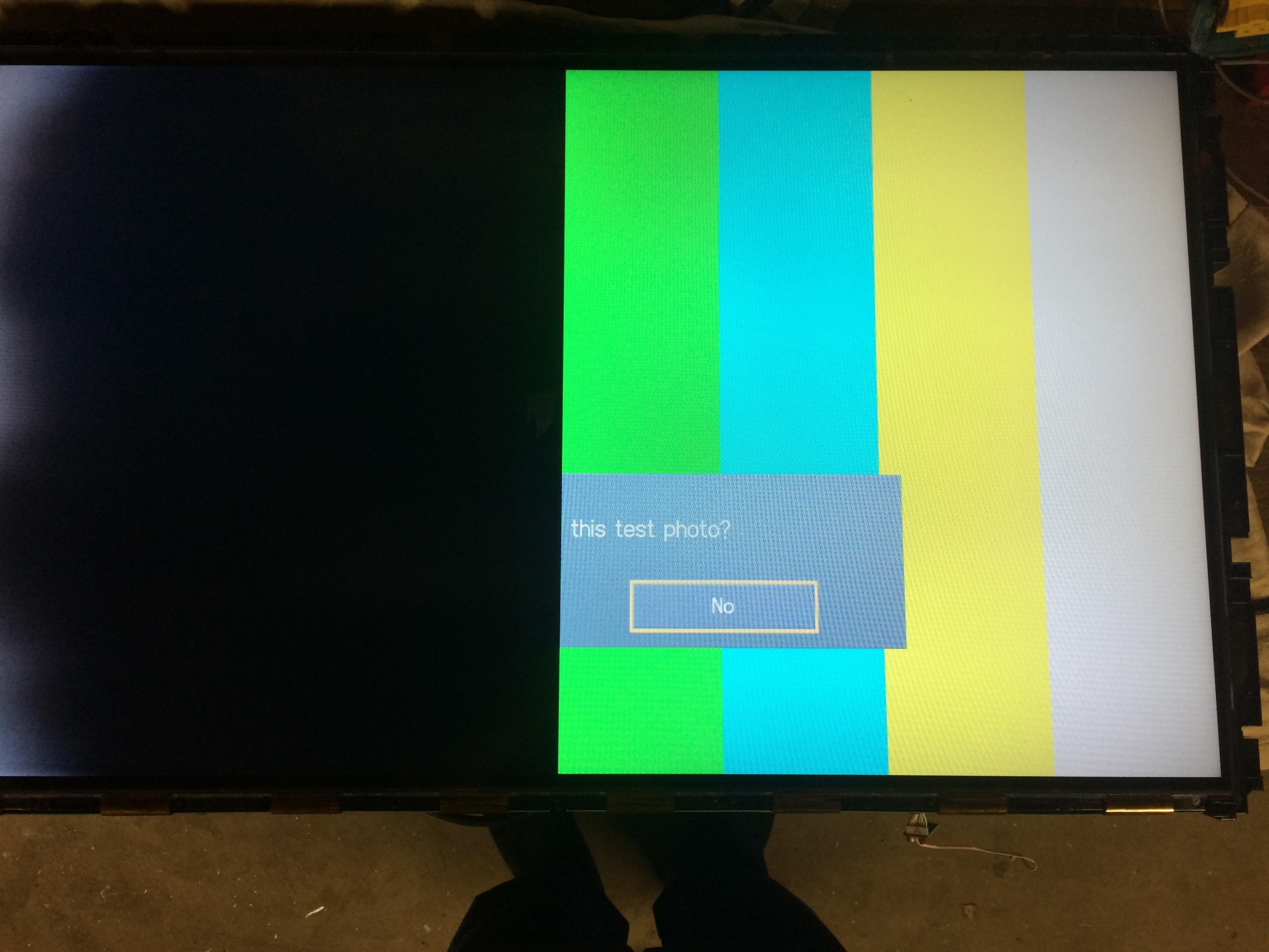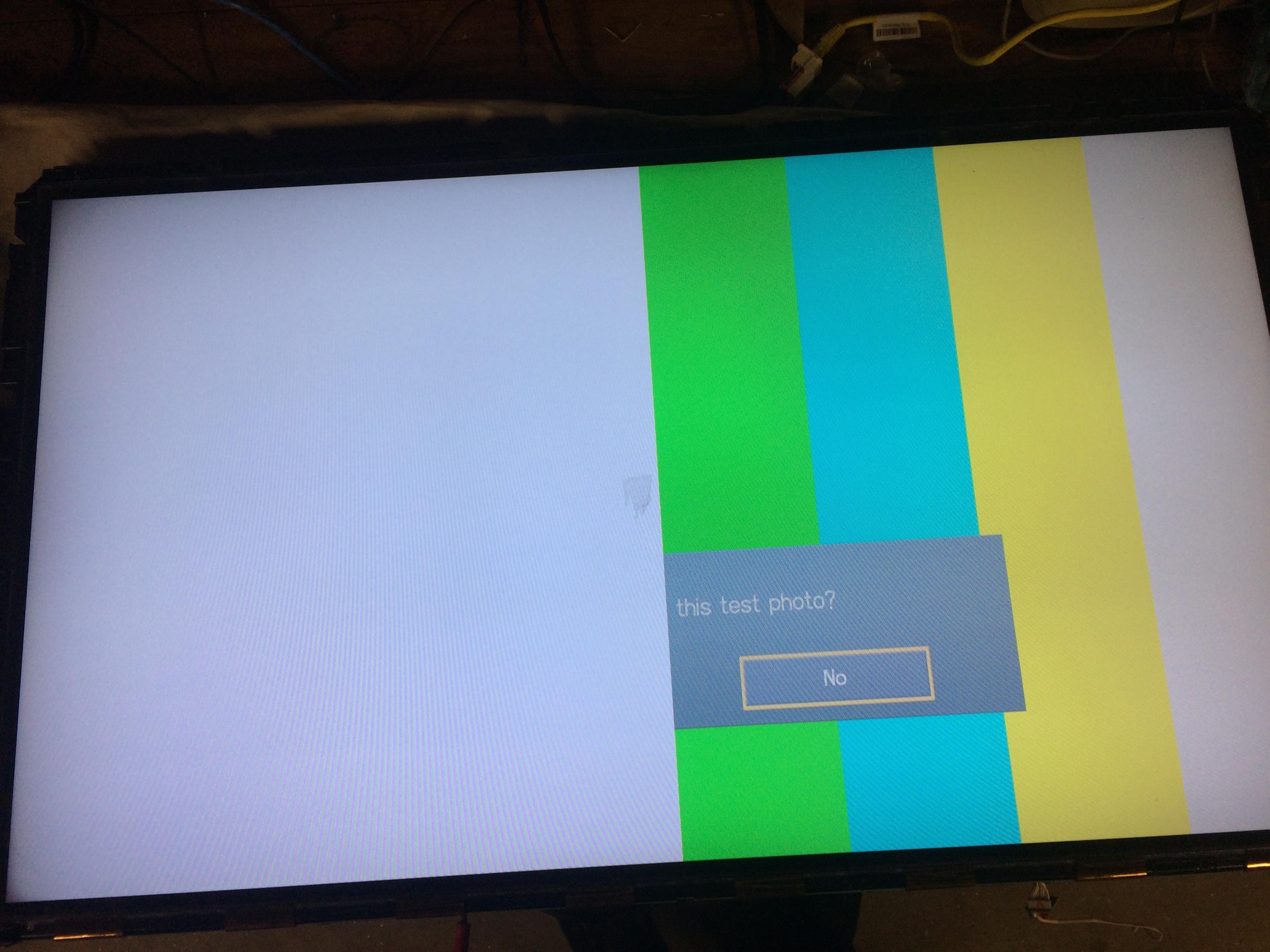 Attached are pictures of the display as it normally occurs, over exposed with white. If i disconnect the left board from the T-Con board then the image on the right hand side appears normal, but whenever the left board is connected it is washed out. Earthing the pads or moving the left board, or T-con board make no differences on the picture.