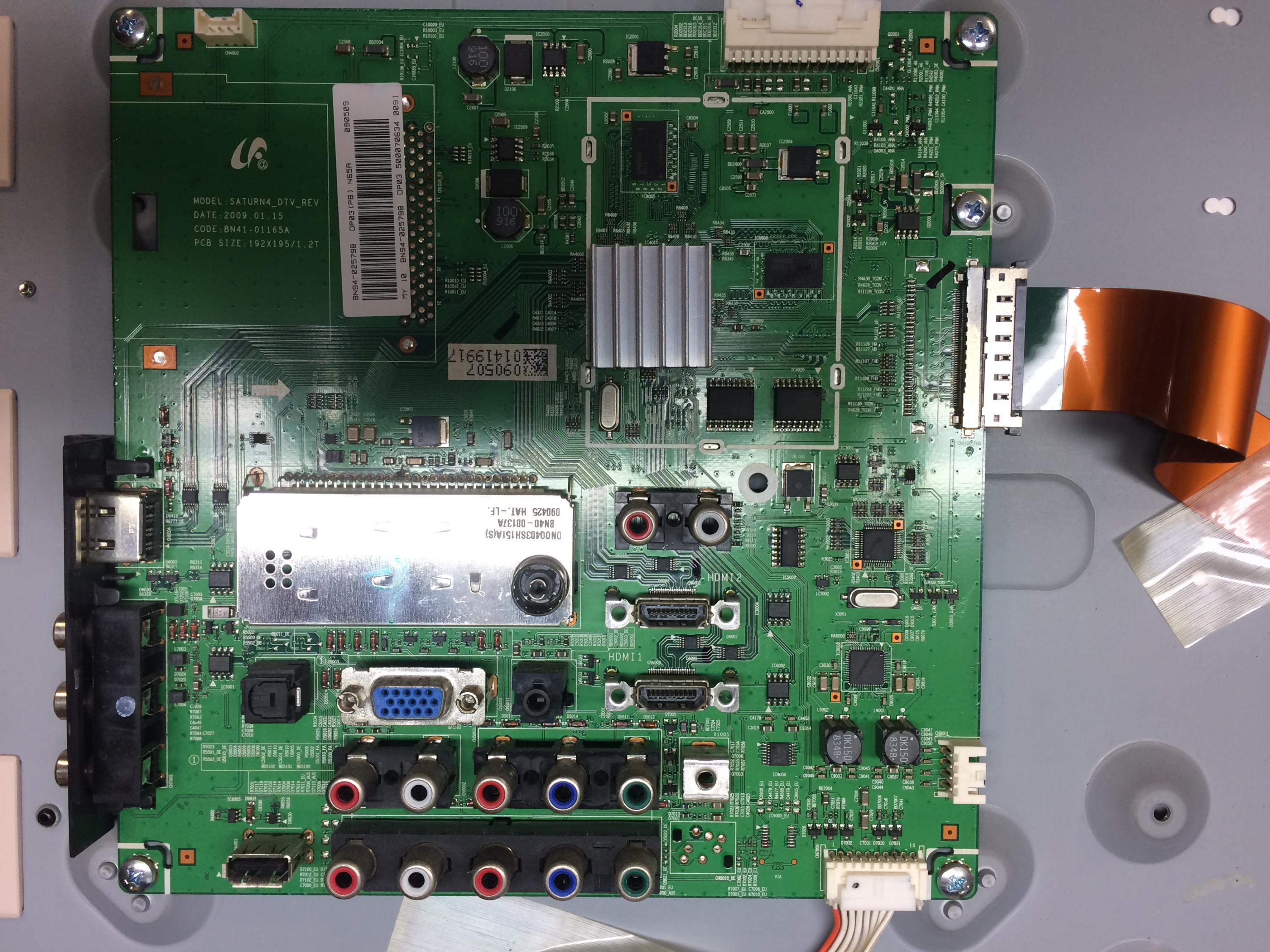 • Jumpered FB_TRDY_1 (pin 1 CN1300 left. main tcon->left side buffer boards) and FB_TRDY_3 (pin 95 CN1301 right. main tcon->right side buffer boards) This allows testing individual T-Con (on main board) connection to panel on this Samsung. Found fault on left side (viewing from rear of TV)