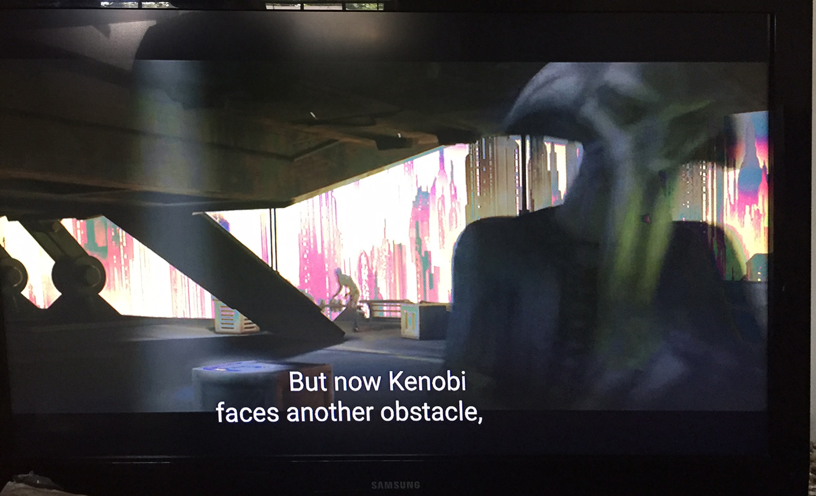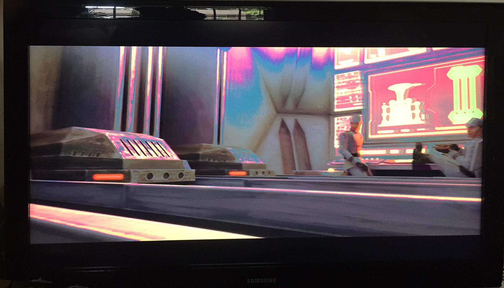 The bright areas on the screen seem to be solarized. Dark areas seem fine. Images below.