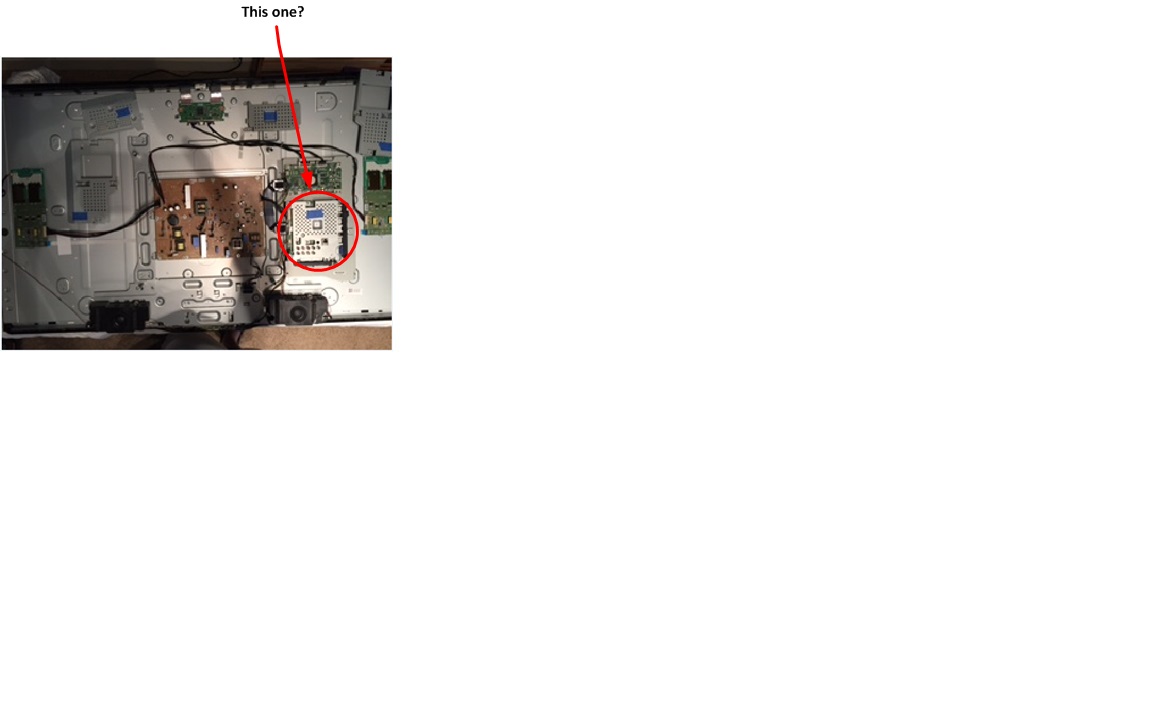 That's it. Parts seem a little hard to find. You've changed t-con. I've changed the board above the main board. Power board is good. Leaves main boardI assume no responsibility for any stupid suggestions I might post.Comment