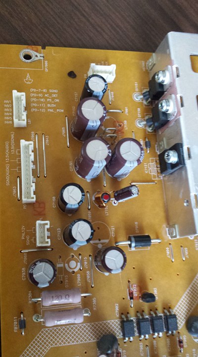 I also took the power supply board out and verified all the MOSFET, diodes and resistors and i didn't found any suspicious components.i also check the ESR of some caps and they are ok.