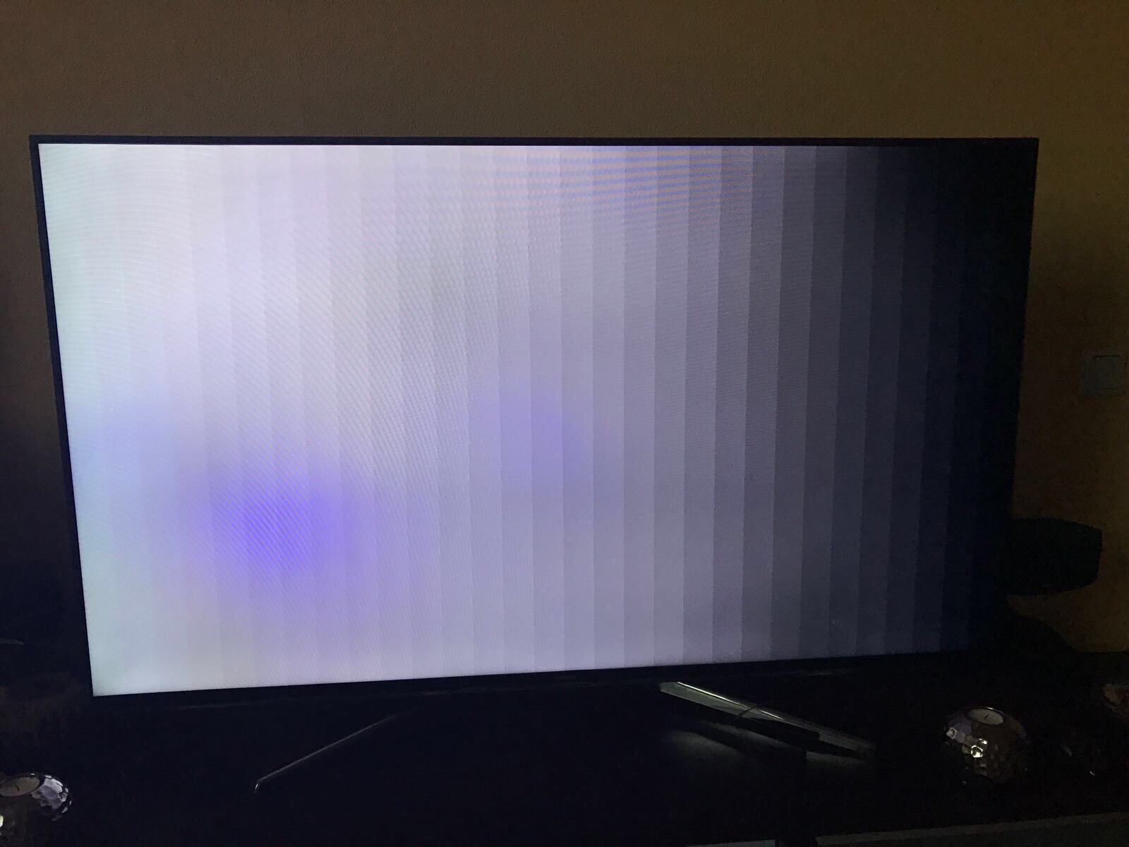 There is a black and purple spot on the tv, as it warms up it gets worse.