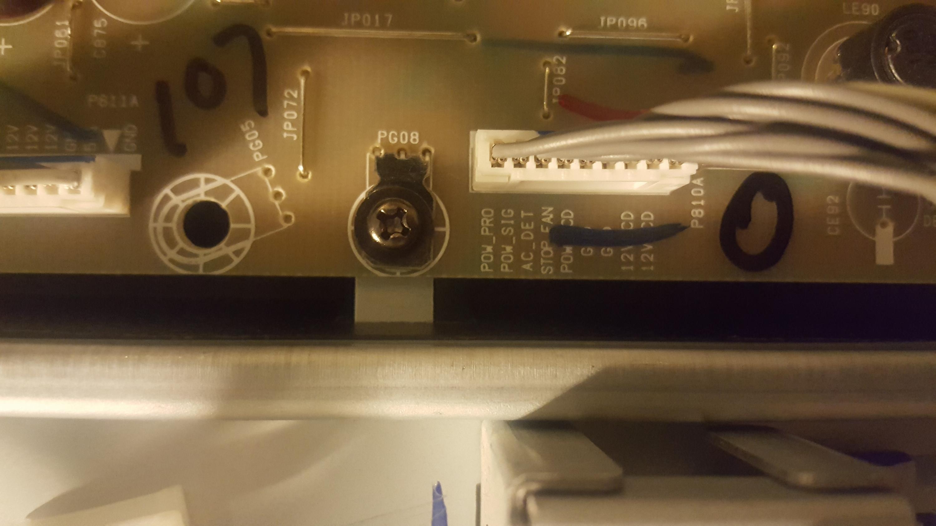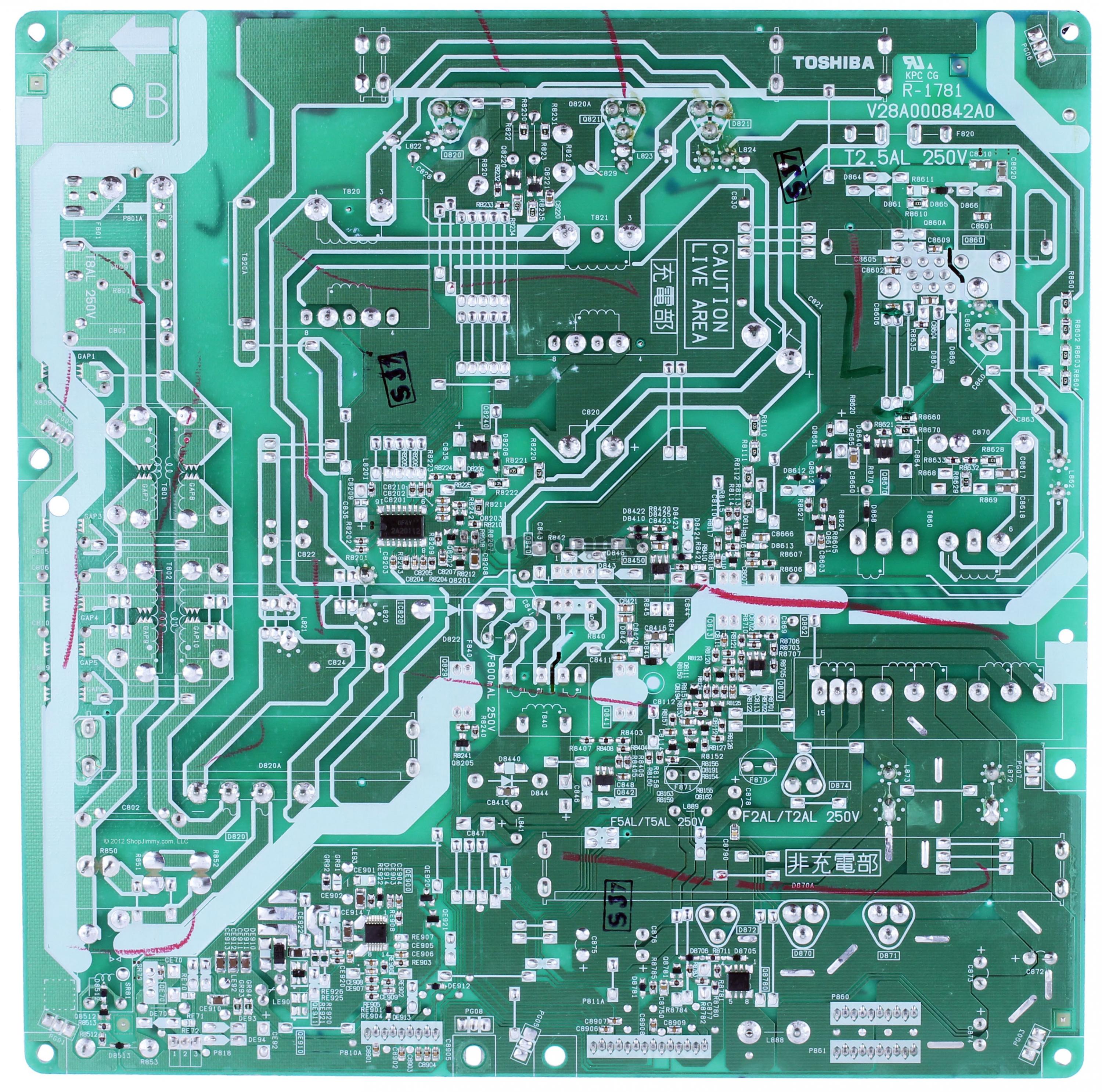We need the pictures of the whole backside of the TV showing all the boards, then we need the straight shot pictures of the whole top side and bottom of this power supply board.